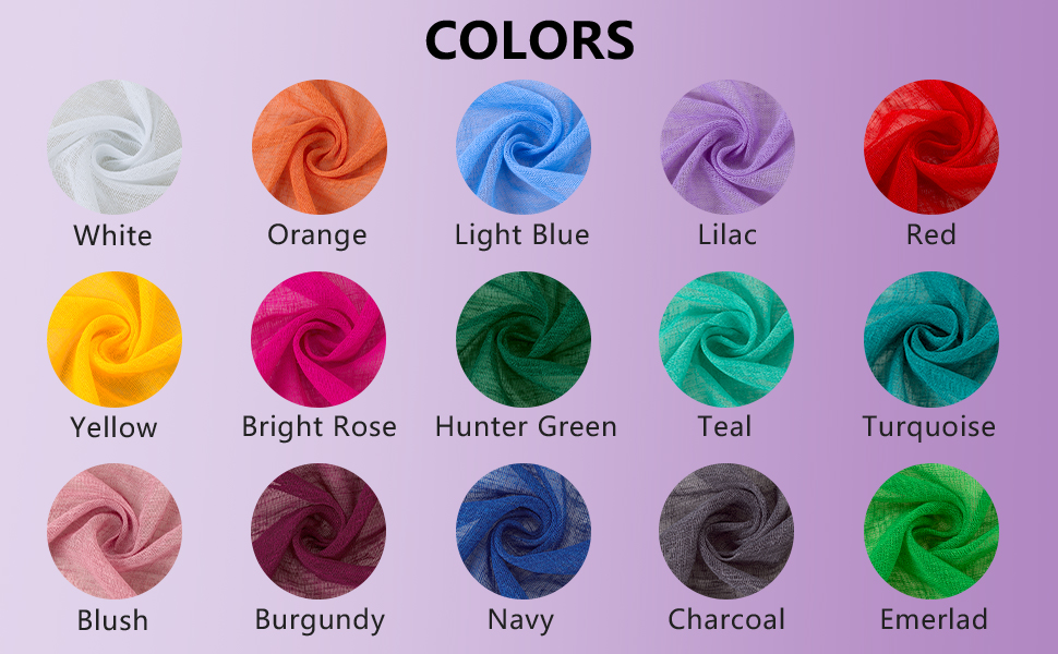 • 🌈 شبه شفافة للخصوصية: تتميز هذه الستائر شبه الشفافة بملمس الكتان، مما يوفر لك الخصوصية أثناء ترشيح ضوء الشمس المبهر وهي متوفرة بألوان وأحجام مختلفة.