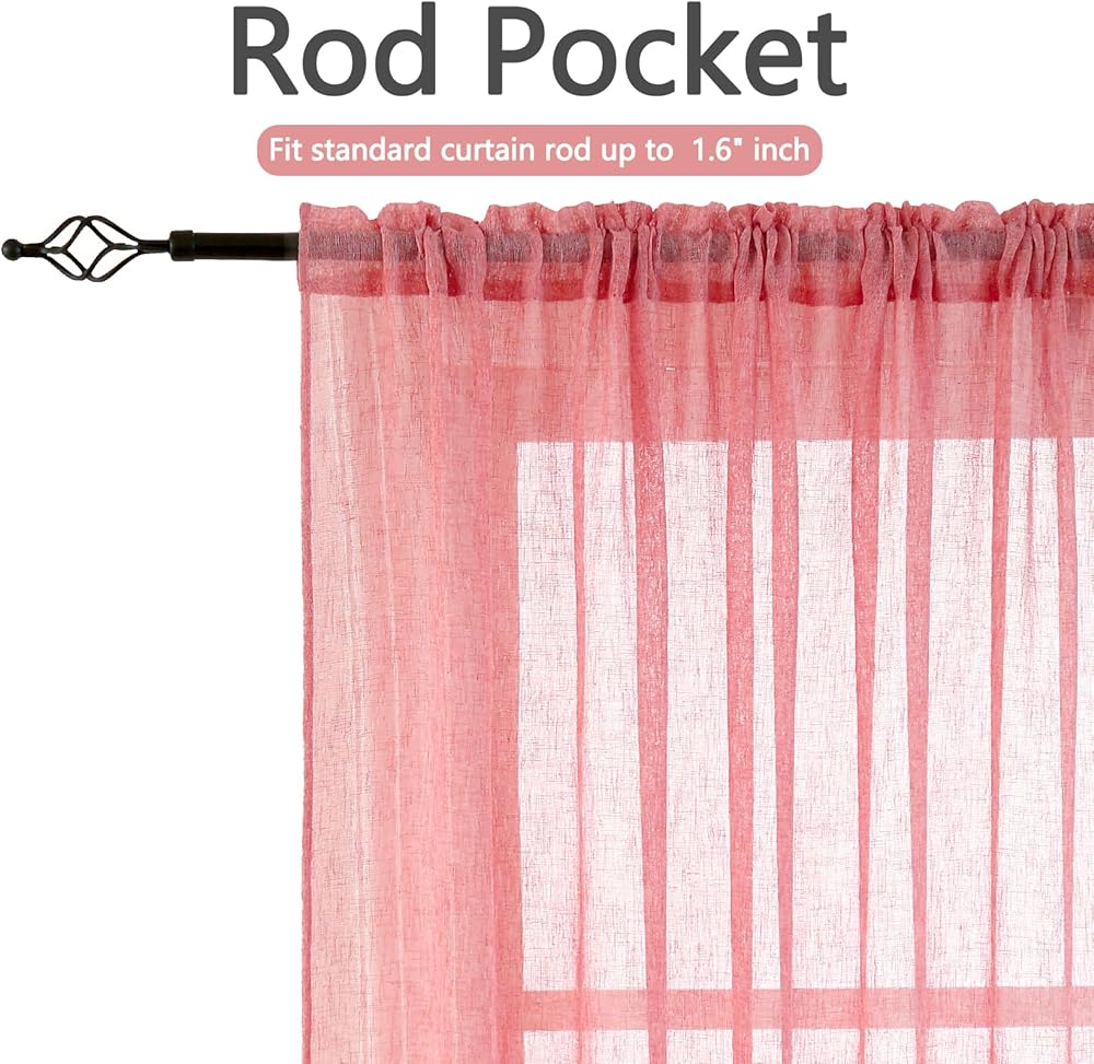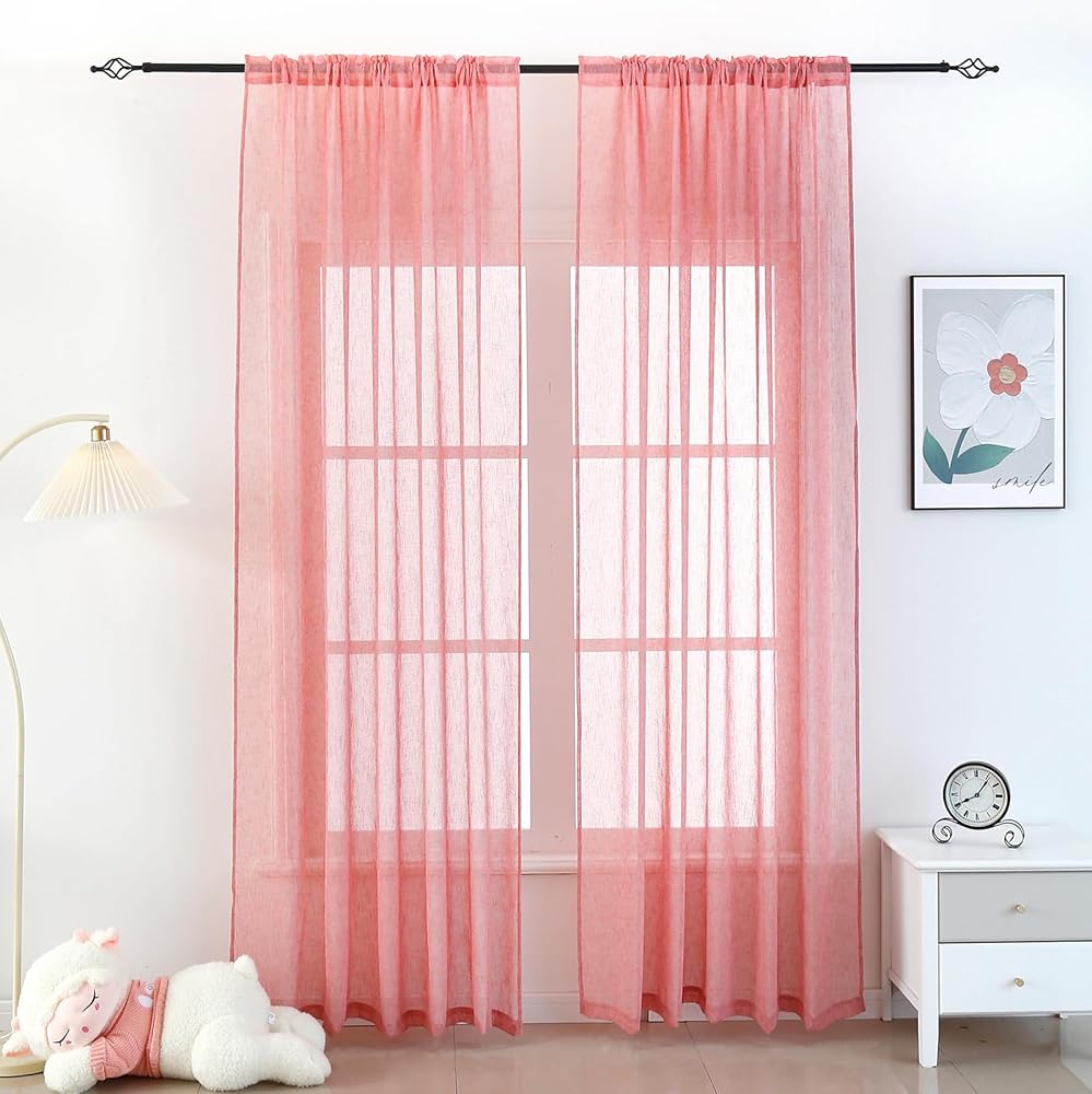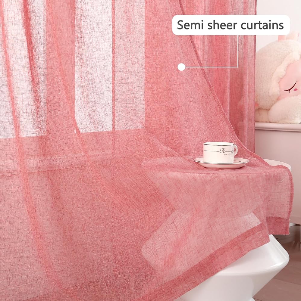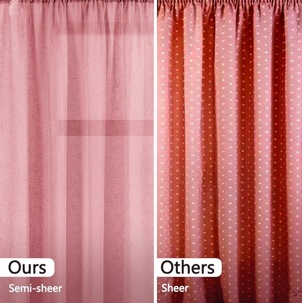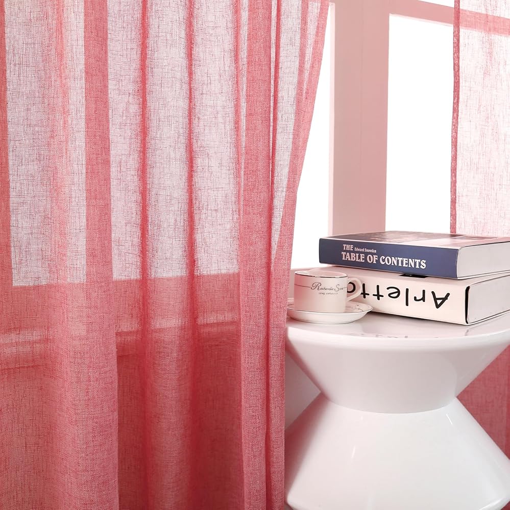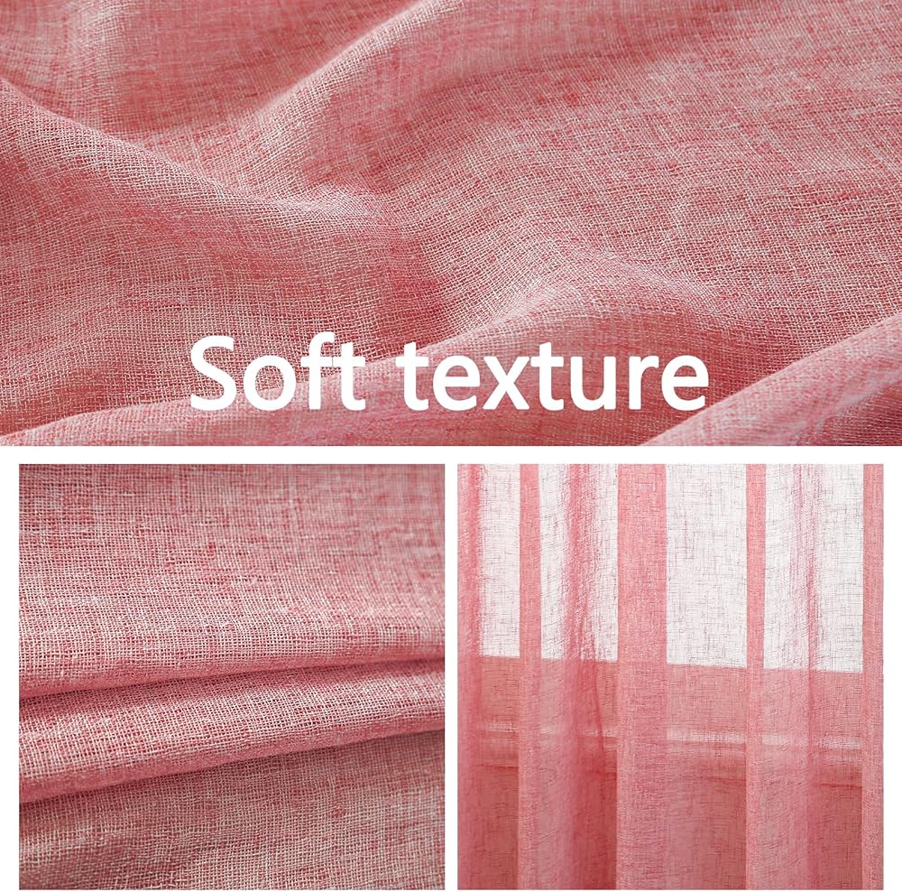 مجموعة توني ستائر شفافة من الكتان الصناعي بطول 63 بوصة لغرفة المعيشة وغرفة النوم وغرفة الأطفال ومعالجات النوافذ لغرفة الطعام وغرفة الضيوف (34 × 63 بوصة، أحمر الخدود، لوحتان)