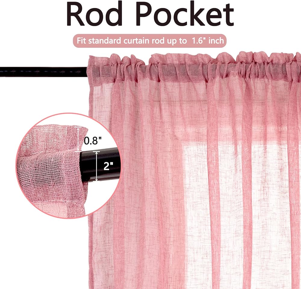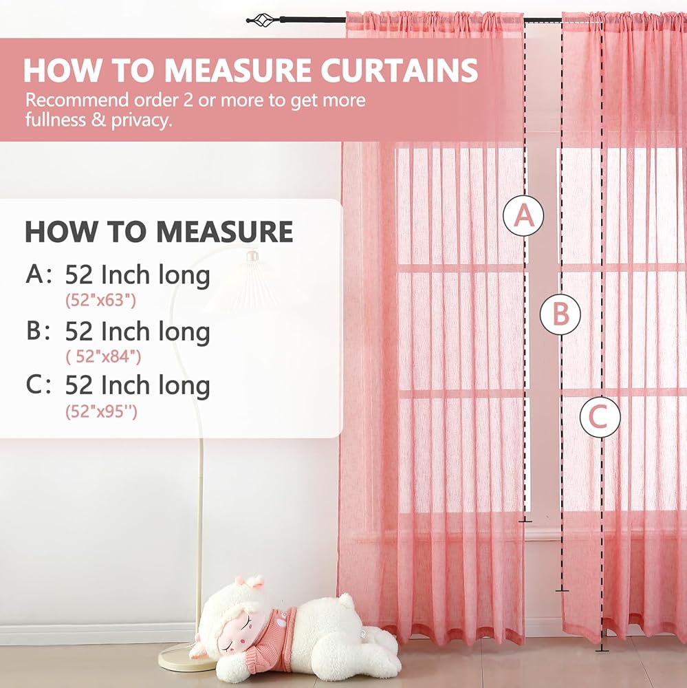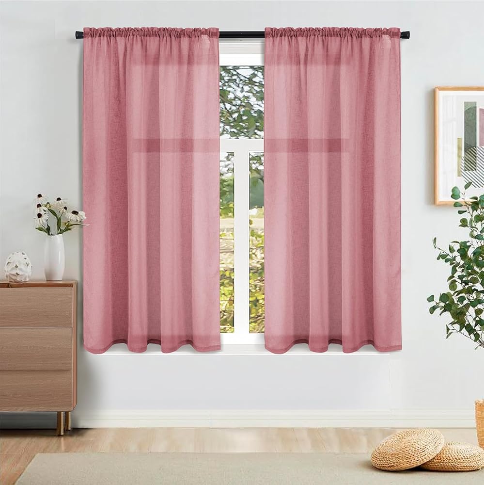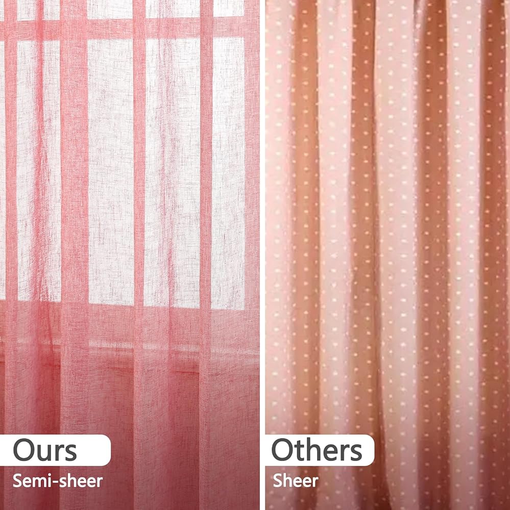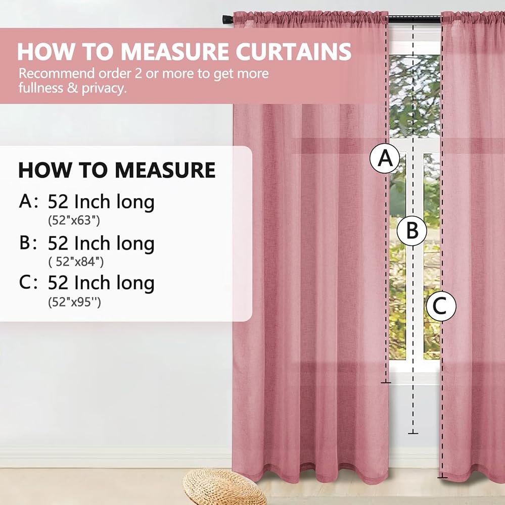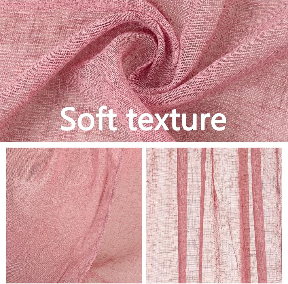 مجموعة توني ستائر شفافة من الكتان الصناعي بطول 63 بوصة لغرفة المعيشة وغرفة النوم وغرفة الأطفال ومعالجات النوافذ لغرفة الطعام وغرفة الضيوف (34 × 63 بوصة، أحمر الخدود، لوحتان)