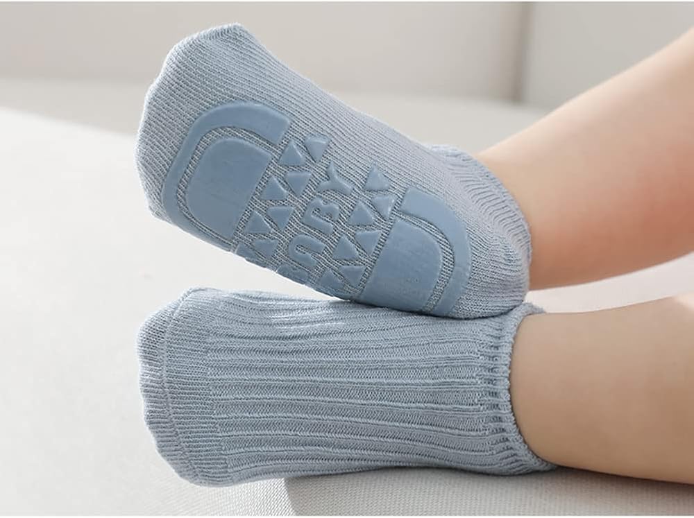 تساعد على منع الانزلاق والسقوط - تحتوي هذه الجوارب على مقابض مضادة للانزلاق في الأسفل لجعلها أسهل وأكثر أمانًا للأطفال الصغار الذين يتعلمون المشي. كما أنها مصممة بأشرطة مرنة للحفاظ على الجوارب.