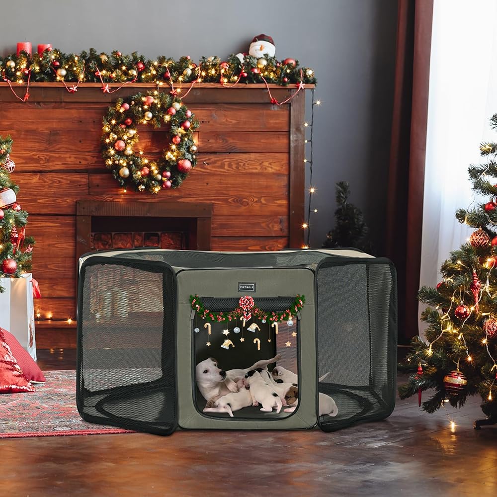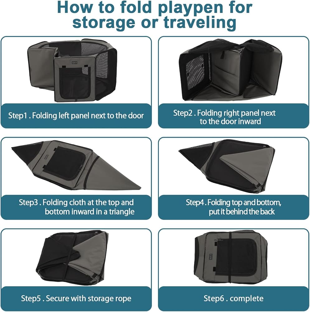 【محمول وخفيف الوزن】يمكن إعداد روضة الكلاب المحمولة هذه بسرعة وطيها في ثوانٍ لسهولة الحمل والتخزين، دون الحاجة إلى تجميع. خفيفة الوزن ولكنها متينة، وهي مثالية للسفر والتخييم.