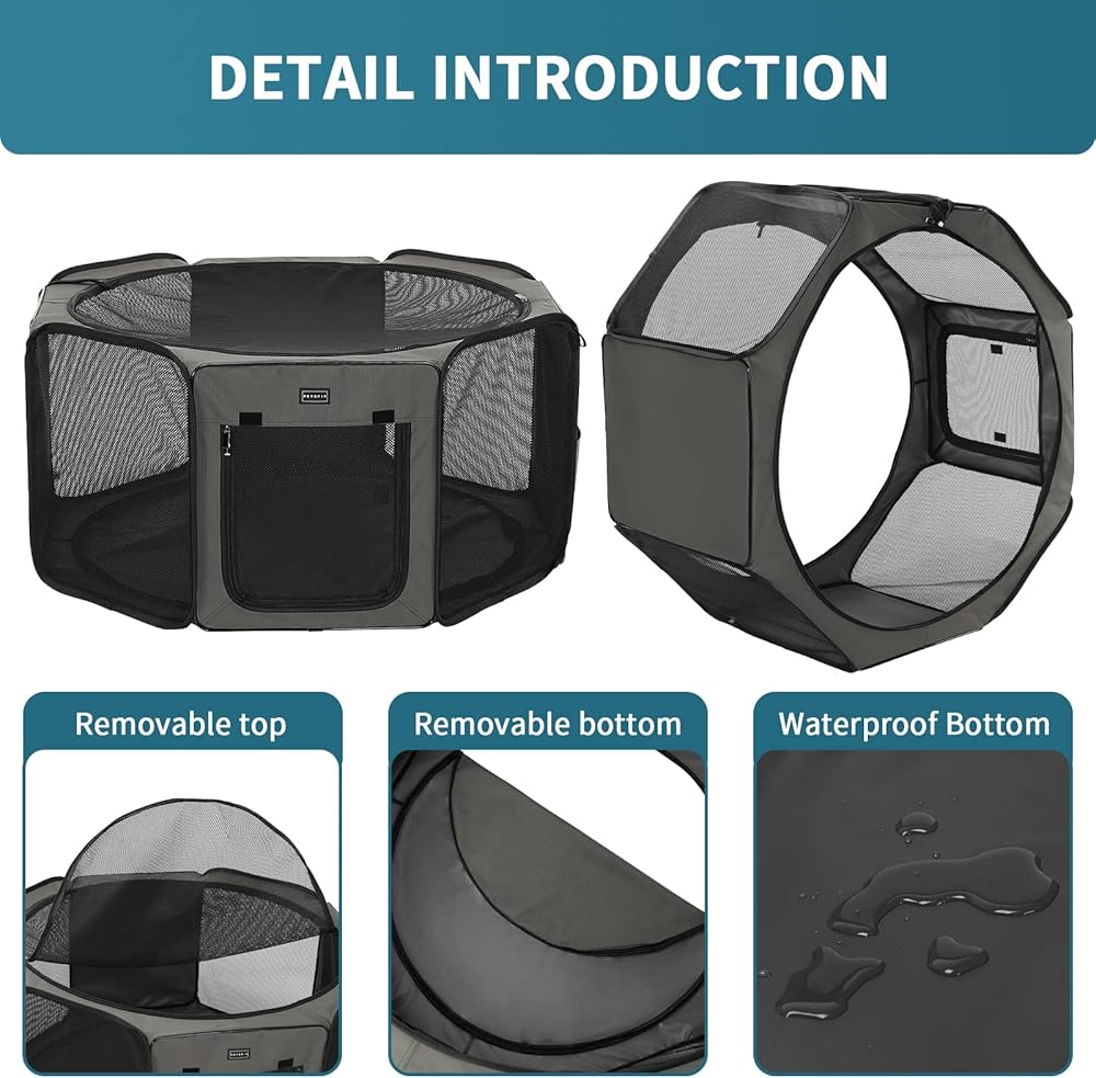 【جزء علوي قابل للإزالة وقاعدة مقاومة للماء】يمكن إزالة الجزء العلوي من قفص لعب الجراء هذا بواسطة السحاب حتى تتمكن من رؤية حيواناتك الأليفة بوضوح. بينما الجزء السفلي مطلي بطبقة PVC مقاومة للماء لسهولة التنظيف. مصنوعة من مواد متينة عالية الجودة ومقاومة للماء مما يجعلها روضة أطفال رائعة للكلاب أو القطط الصغيرة.