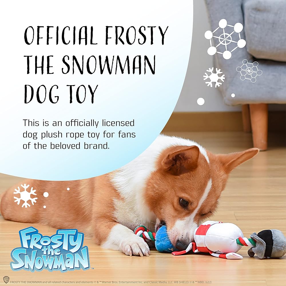 لعبة وارنر بروس فروستي ذا سنو مان من القطيفة والحبل، 35.56 سم | ألعاب قطيفة تصدر صوت صرير للكلاب، ألعاب شد الحبل للكلاب | منتج الحيوانات الأليفة المرخص رسميًا للكلاب ومواد تخزين الحيوانات الأليفة
