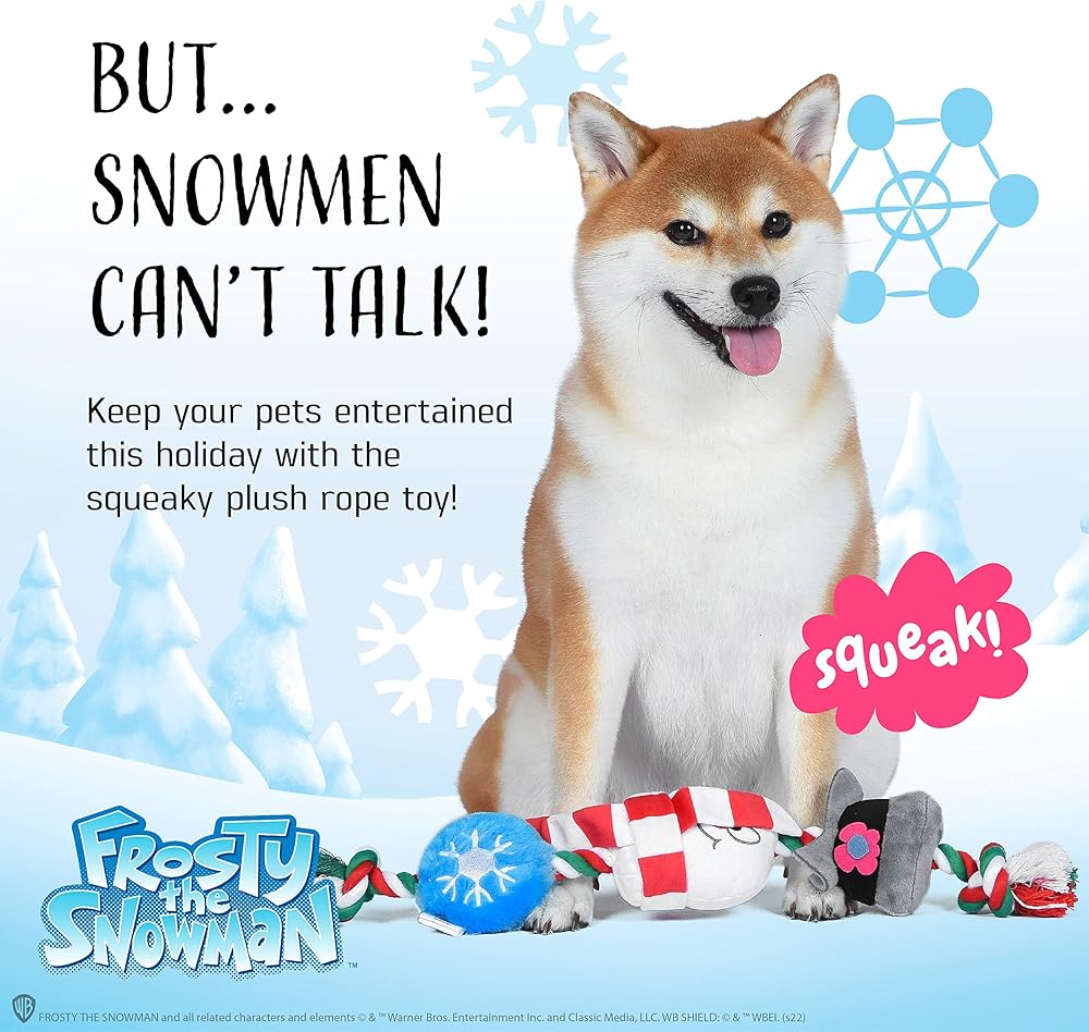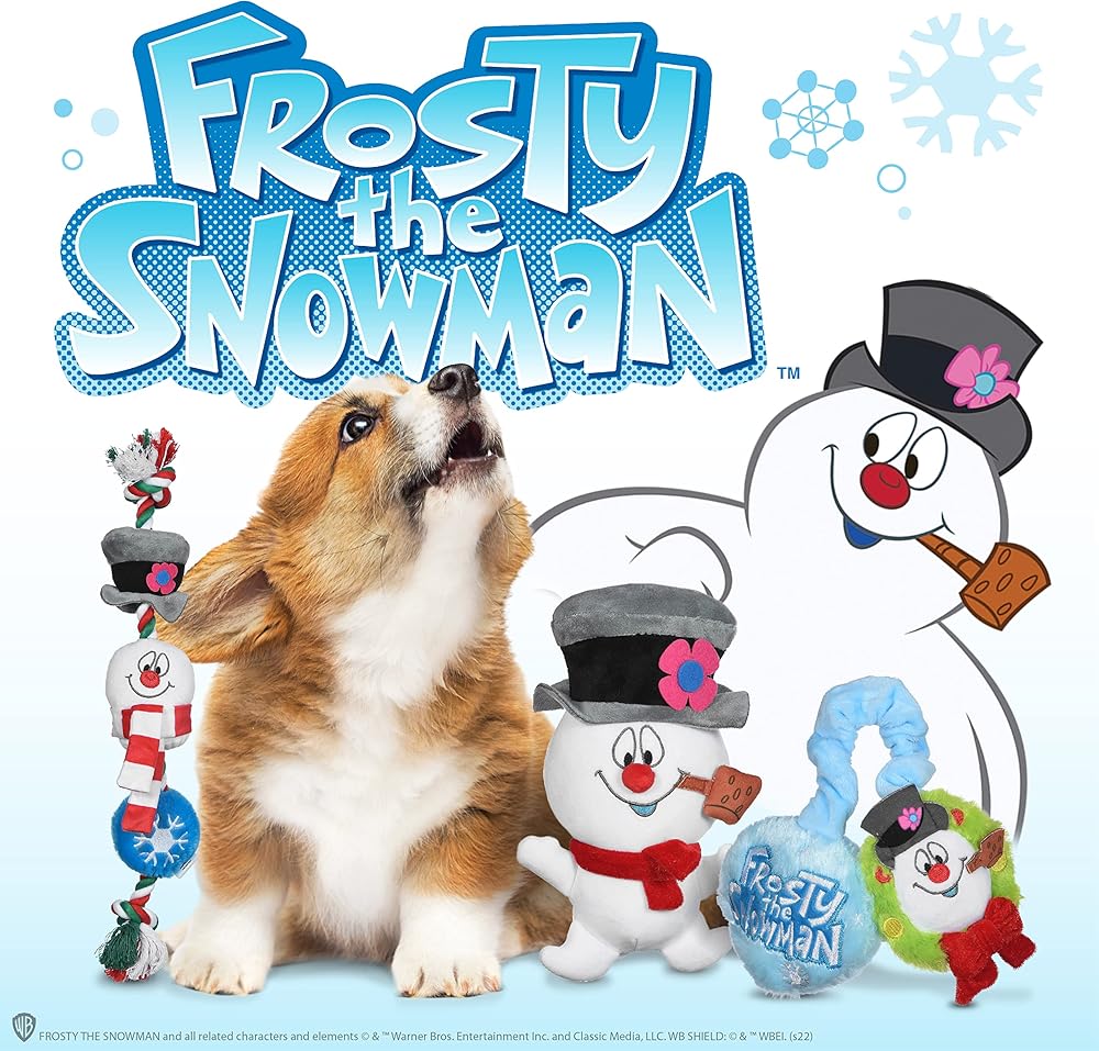 • INSPIRED BY FROSTY THE SNOWMAN – This pet Christmas toy is inspired by the film Frosty the Snowman, featuring Frosty himself as an adorable pet plush