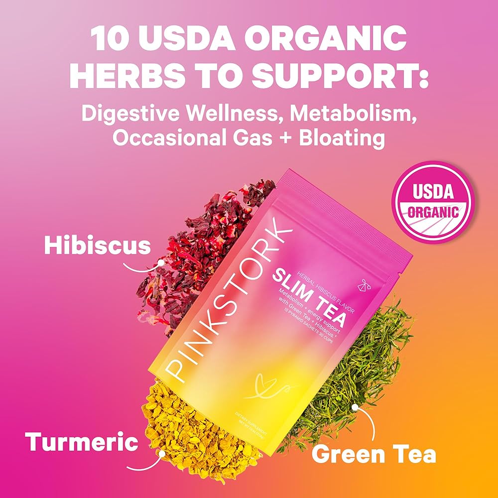 بينك ستورك يدعم الشاي النحيف عملية الأيض الطبيعية والانتفاخ ومستويات الطاقة في جسمك مع الشاي الأخضر وعرق السوس والكركديه والكركم. مصنوع من الكافيين الطبيعي.