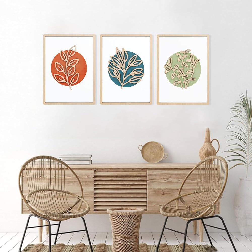 FWIEXA Minimalist Leaf Wood Wall Art, 3D Boho Botanical Art, Rustic Natural Themed Wall Room Decor for Bedroom, Living Room, Dining Room, Office