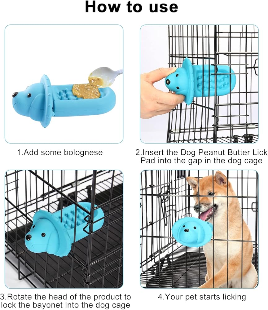 تشتيت الانتباه وتقليل القلق - قم بتغطية لعبة لعق القفص بزبدة الفول السوداني أو الطعام اللزج المفضل لكلبك، والذي يمكن أن يساعد حيوانك الأليف على تشتيت انتباه حيوانك الأليف وتخفيف القلق عن طريق اللعق. (تأتي مع فرشاة مجانية وسهلة التنظيف بعد الاستخدام).