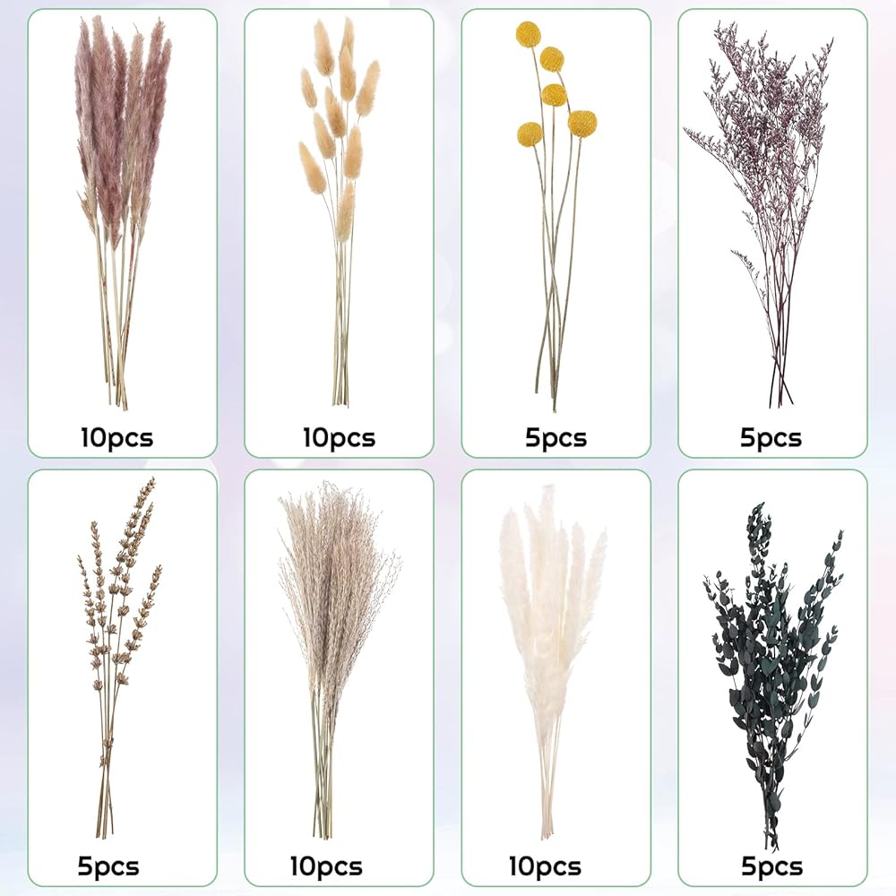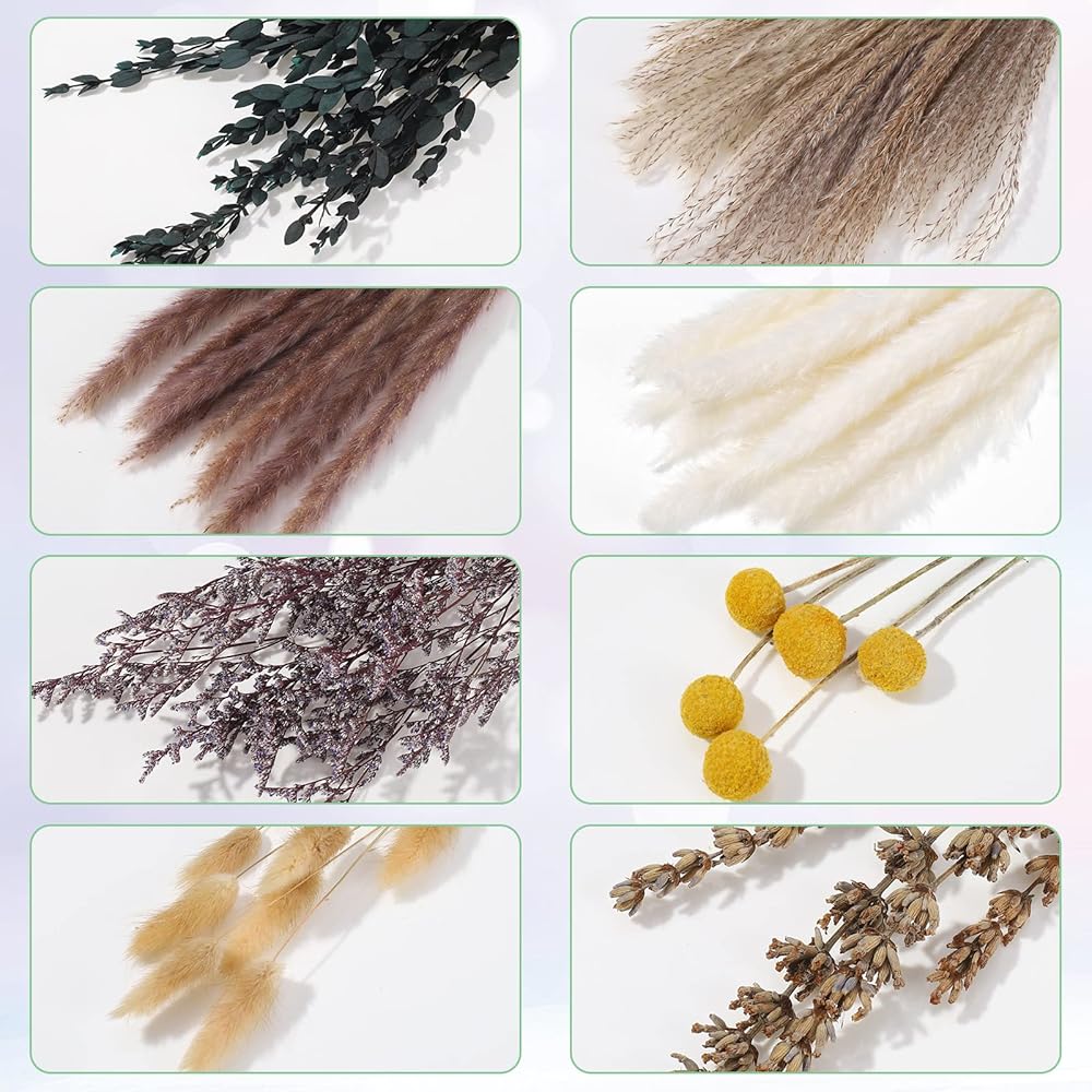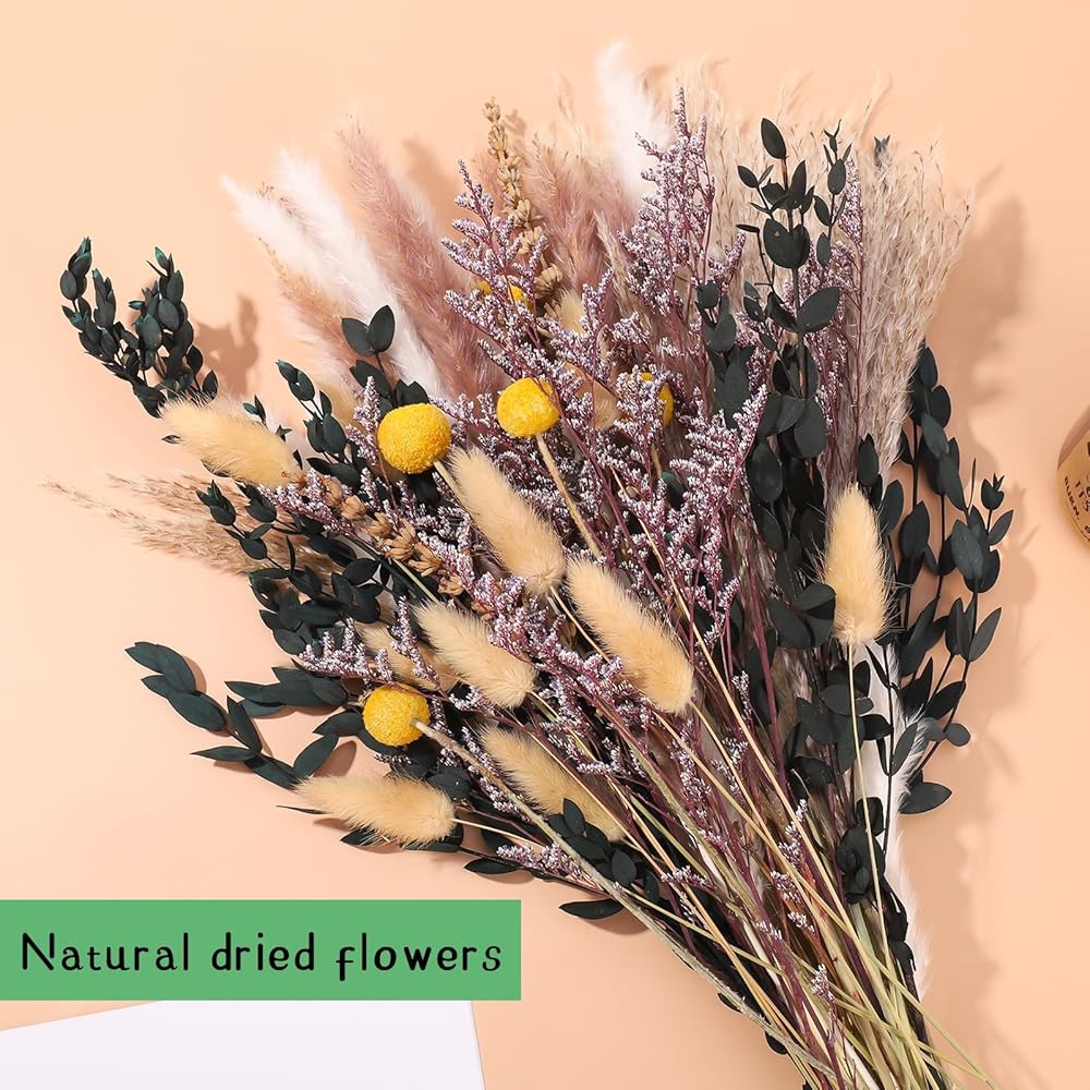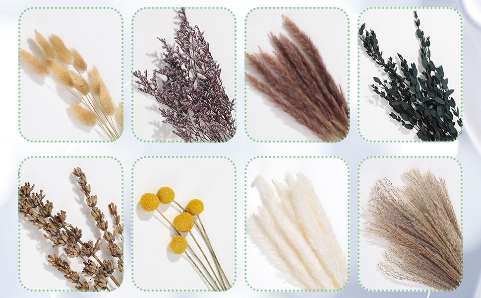 【تخزين طويل】--- لأن باقة الزهور الجافة وحزمة الأوكالبتوس المجففة وعشب البامبا وغيرها ليست مجرد ديكور أنيق، ولكنها أيضًا تظل أنيقة لفترة طويلة، بل إنها أيضًا تسجل درجات من حيث الاستدامة. بمجرد تجفيف الزهور بشكل صحيح، يمكن أن تدوم الباقات المجففة بشكل طبيعي إلى الأبد تقريبًا.