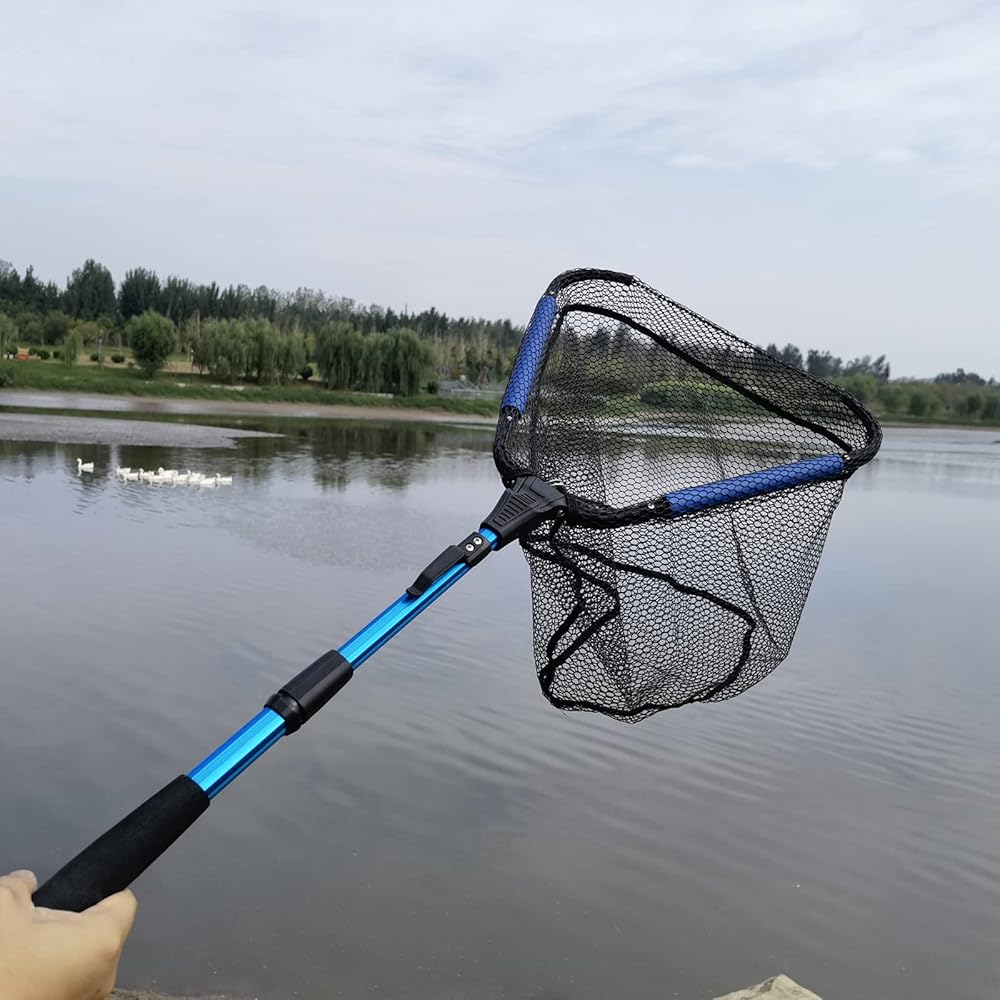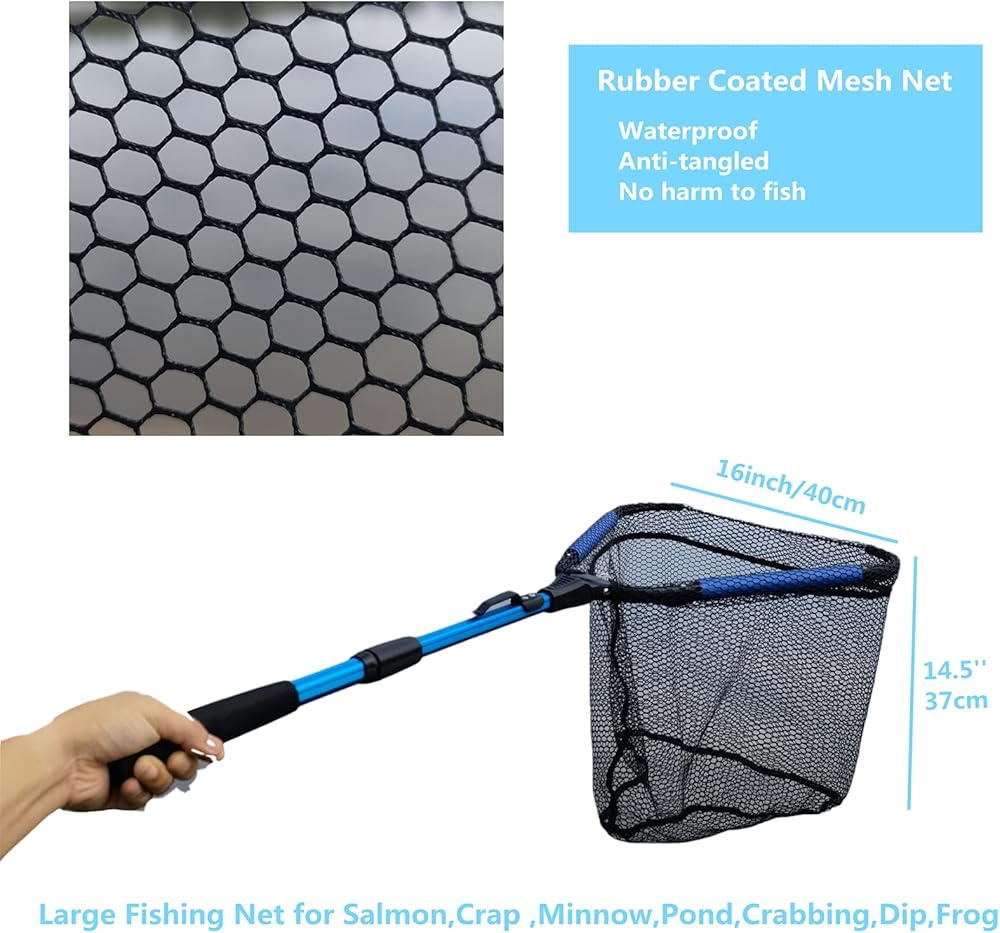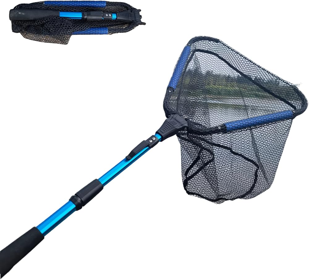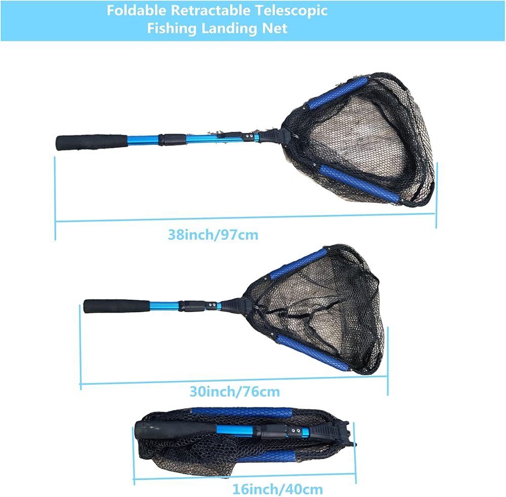 شبكة صيد سمك قابلة للطي وقابلة للسحب - شبكة صيد كبيرة مثلثة كلاسيكية، مقاس الشبكة 16 بوصة/40 سم، العمق الصافي 14.5 بوصة/37 سم. مقبض عصا تلسكوبي قابل للسحب من 30 انش/76 سم إلى 38 انش/97 سم. شبكة صيد مدمجة قابلة للطي لصيد الأسماك في المياه العذبة والمالحة.
