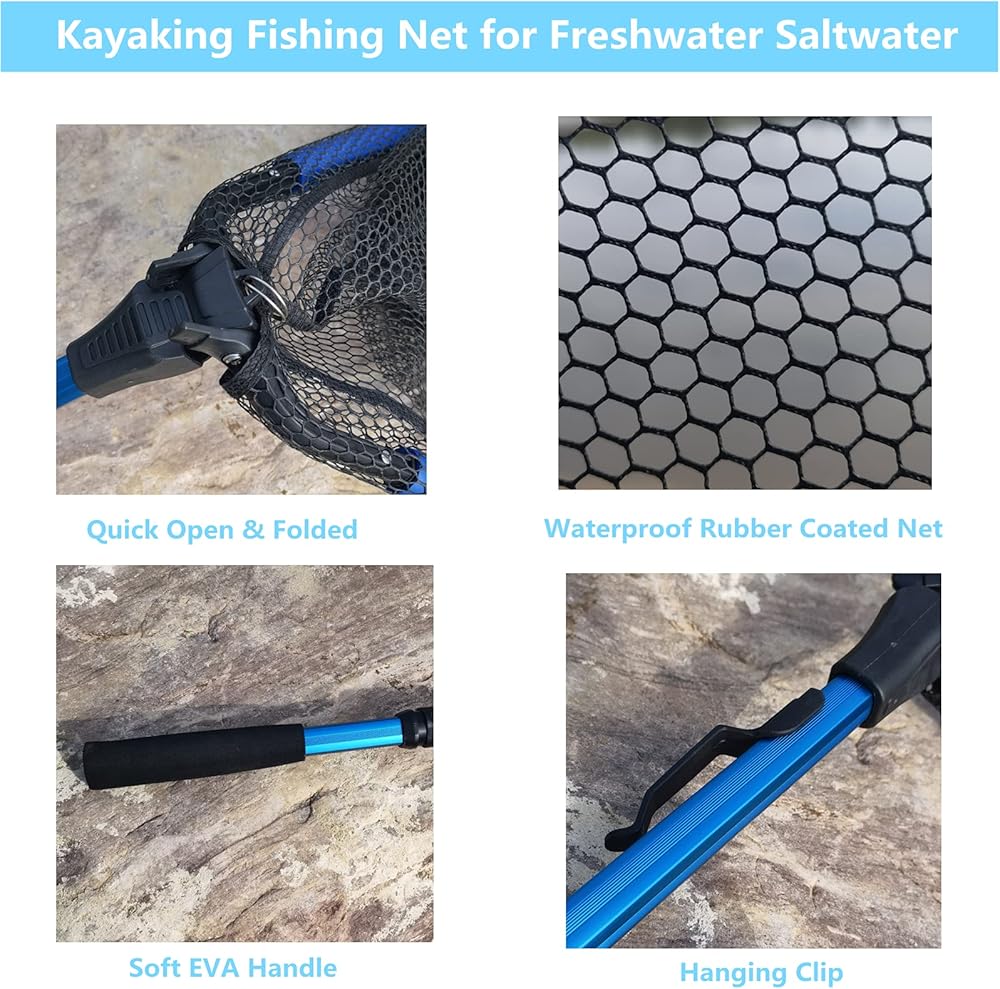 مريحة وسهلة الاستخدام والتخزين - شبكة صيد قابلة للطي مع مقبض ايفا الناعم توفر قبضة مريحة للصيد لفترة طويلة. يمكن تعليق شبكة الصيد الصغيرة وخفيفة الوزن بسهولة على حزام الصيد أو سترة الصيد أو حقيبة مستلزمات الصيد، سهلة الحمل والتخزين.