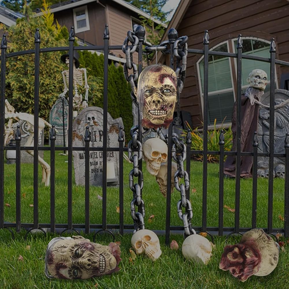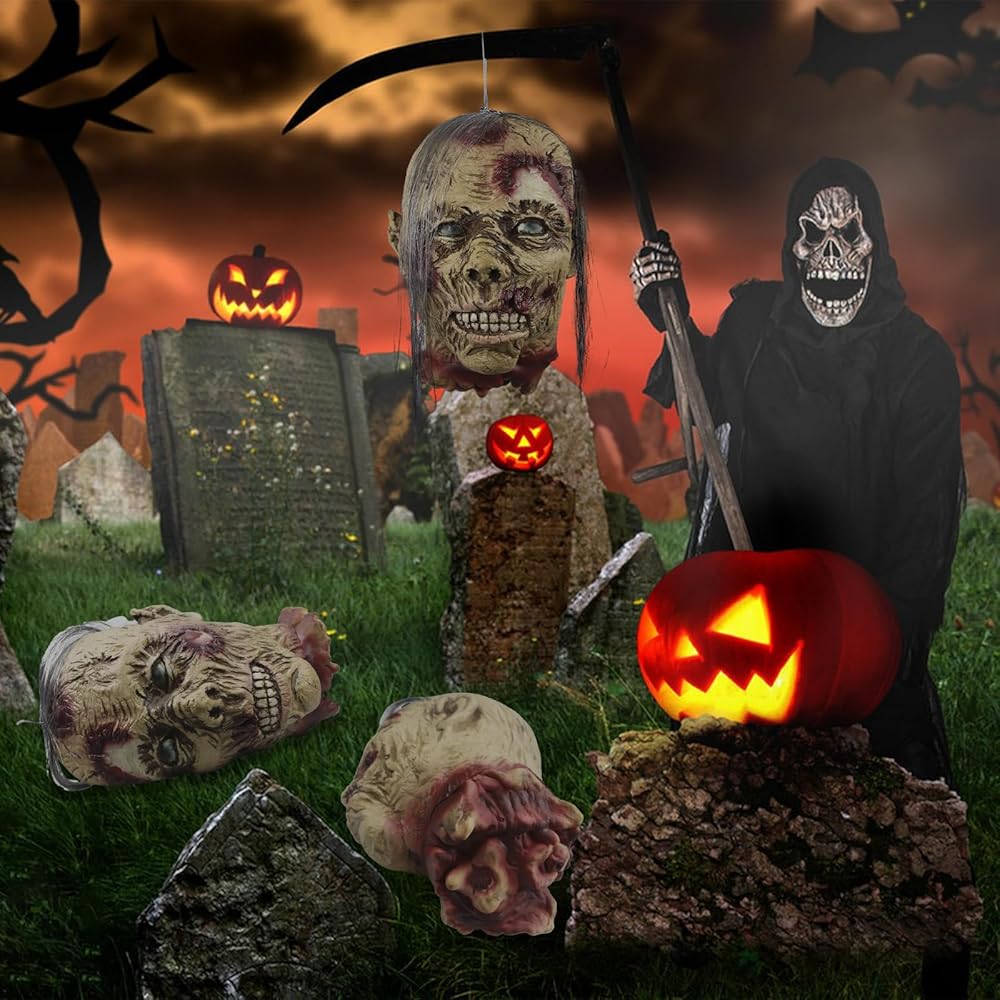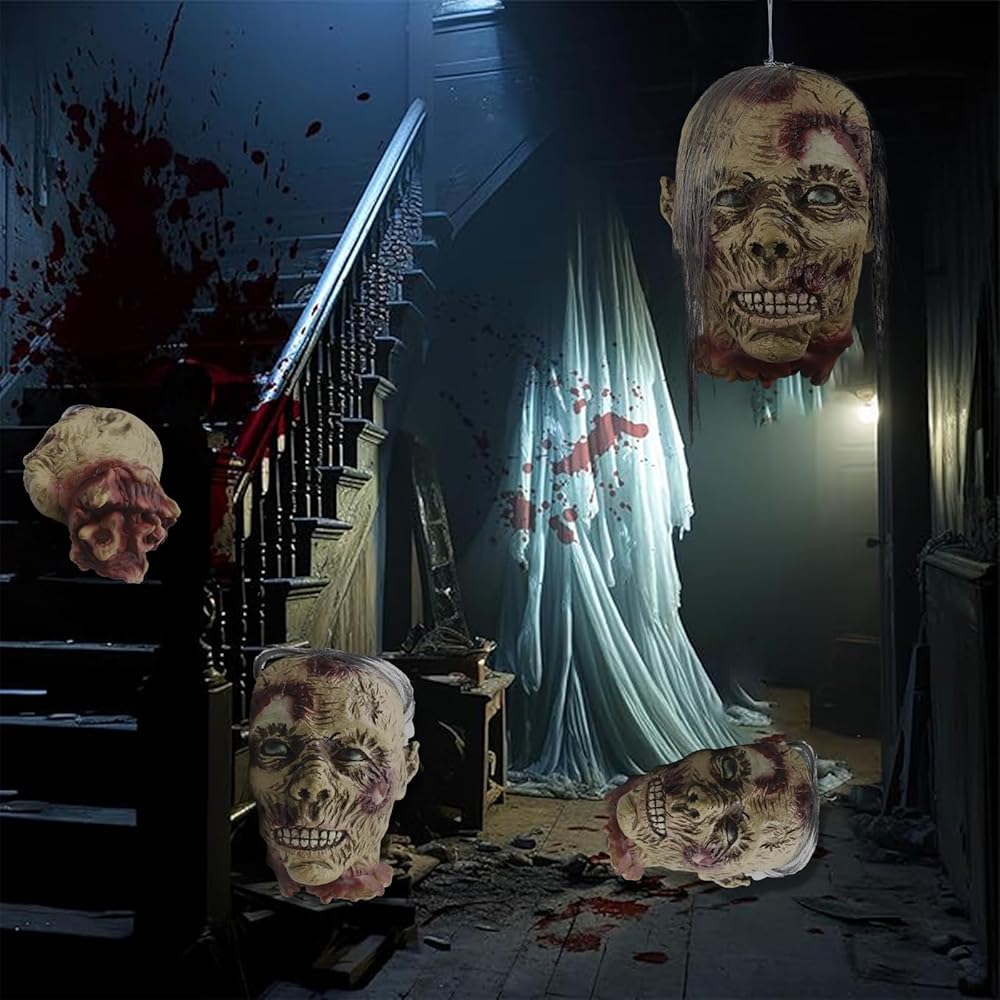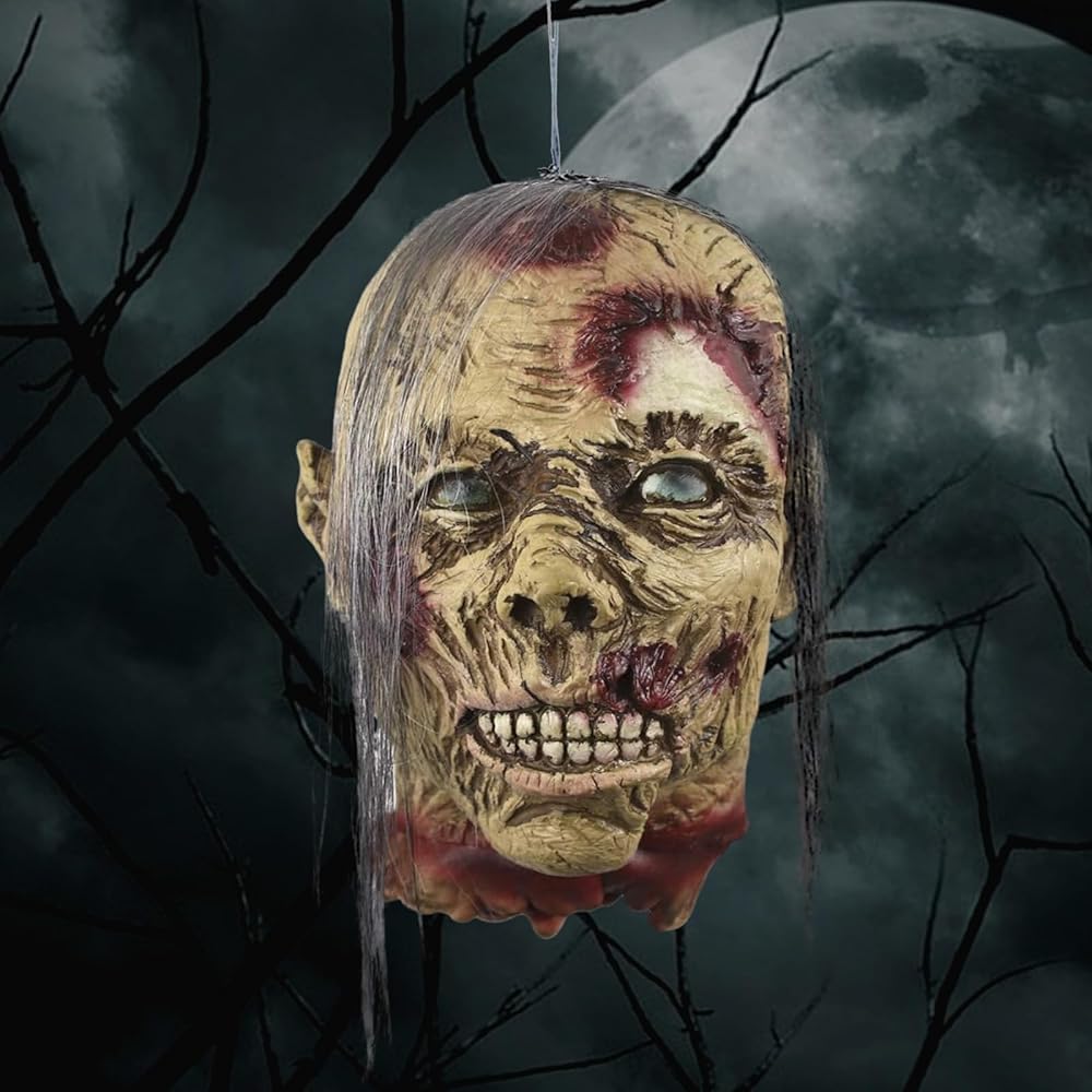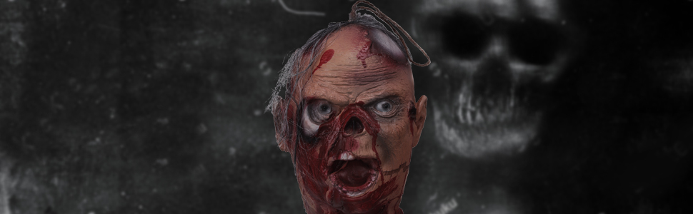 يسهل تعليق الرؤوس المتشققة المخيفة ذات الرقبة الدموية، ومن المؤكد أنها ستخيف، ويمكن ربط الرؤوس الدموية وترك التعليق أو استخدامها كدعامة للطاولة. متينة ويمكن تكرار استخدامها.