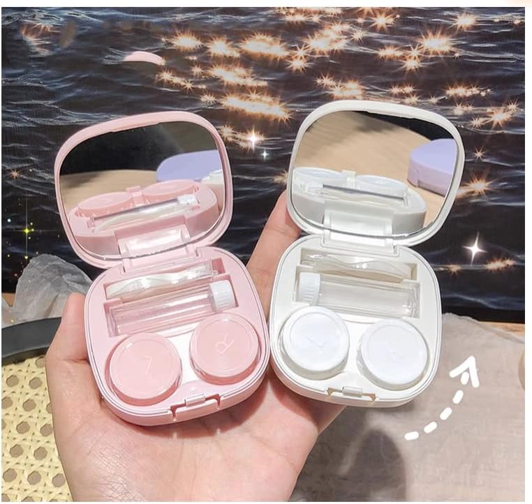 مجموعة تخزين العدسات اللاصقة: ستحصل على 2 حافظة حامل اتصال، واحدة باللون الوردي، والأخرى بيضاء، يمكنك وضع واحدة في المنزل للاستخدام، والأخرى في المكتب للنسخ الاحتياطي اليومي، مريحة لحياتك وعملك