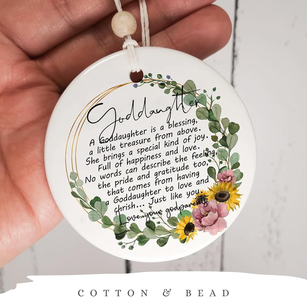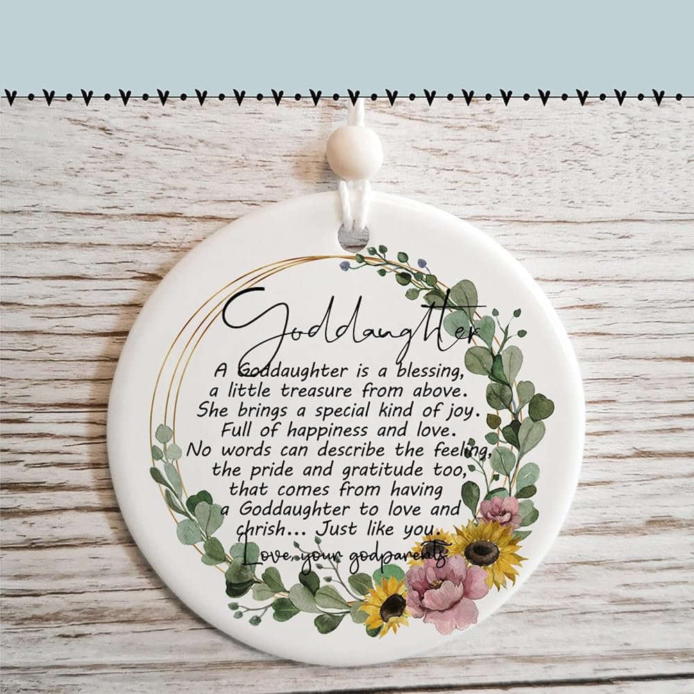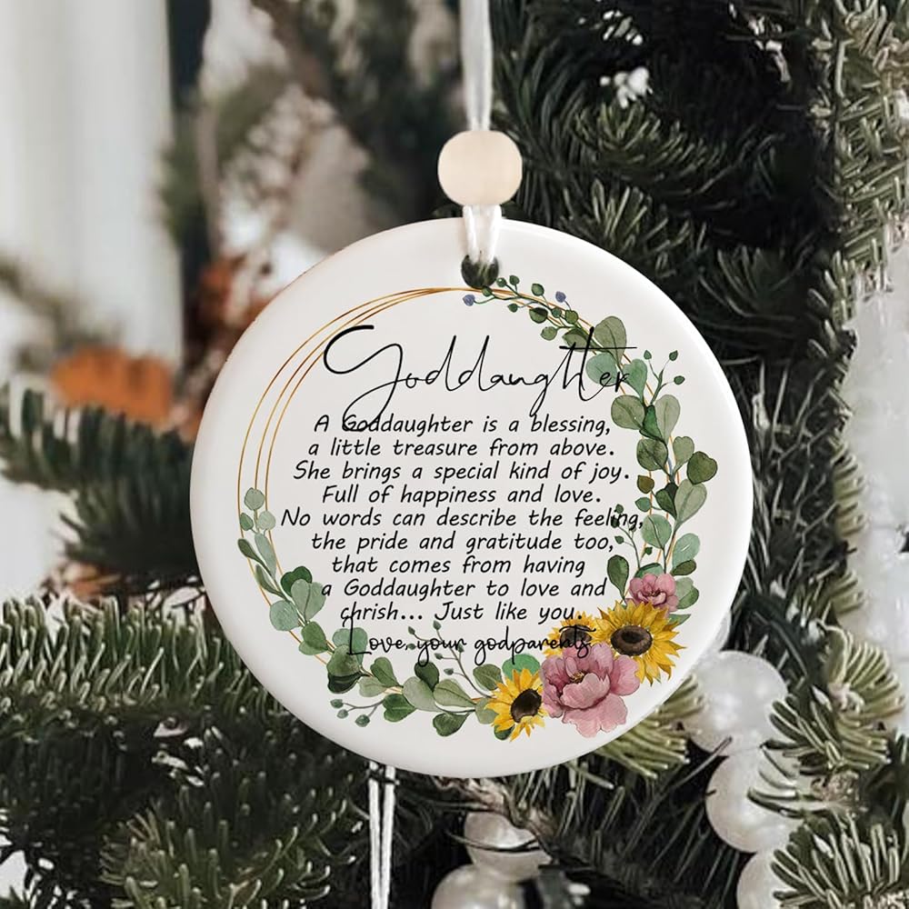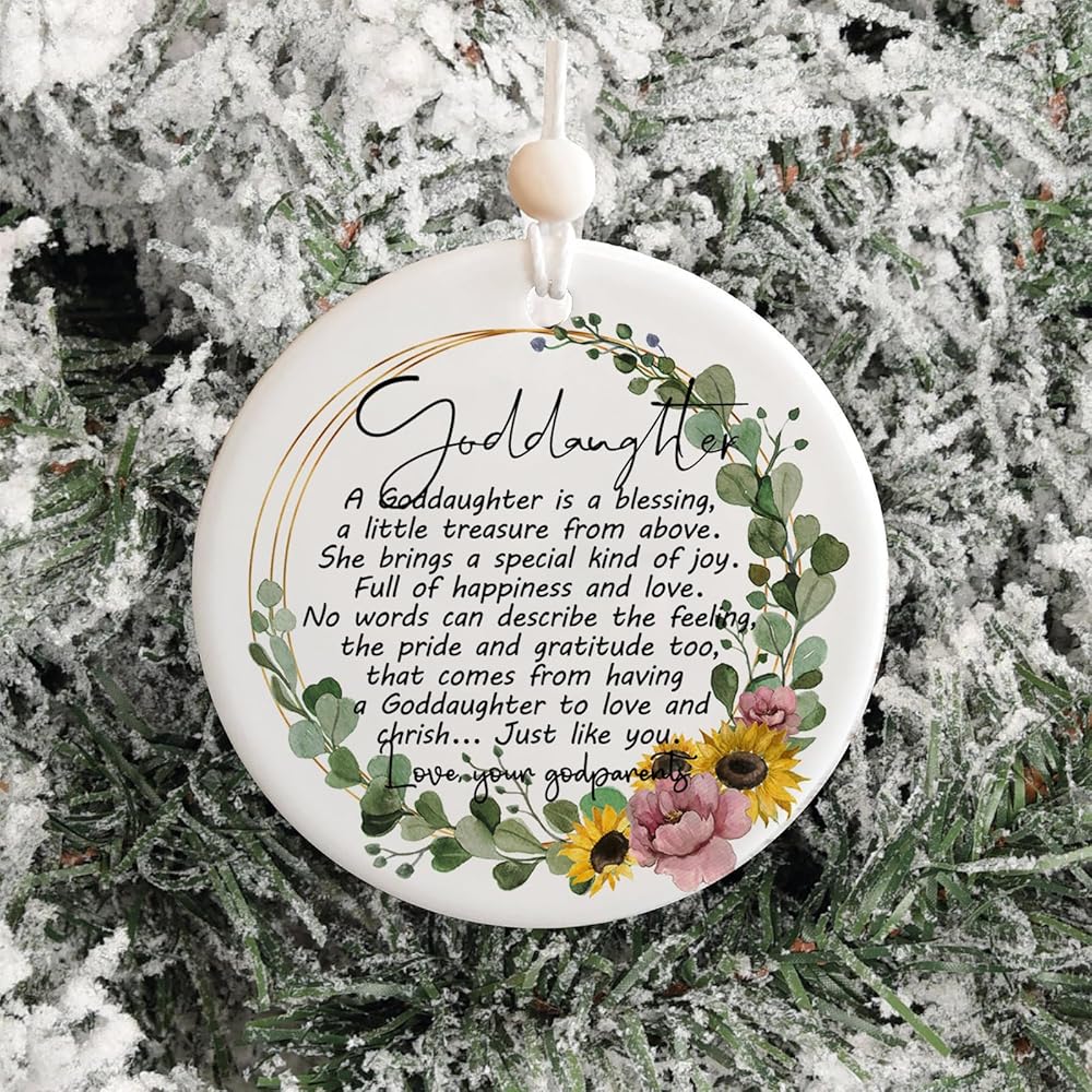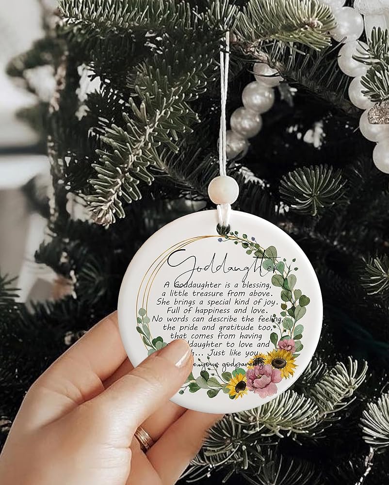 Goddaughter Christmas ornament 2023: It's beautifual high quality ceramic Christmas ornaments that will become a treasured keepsake for years