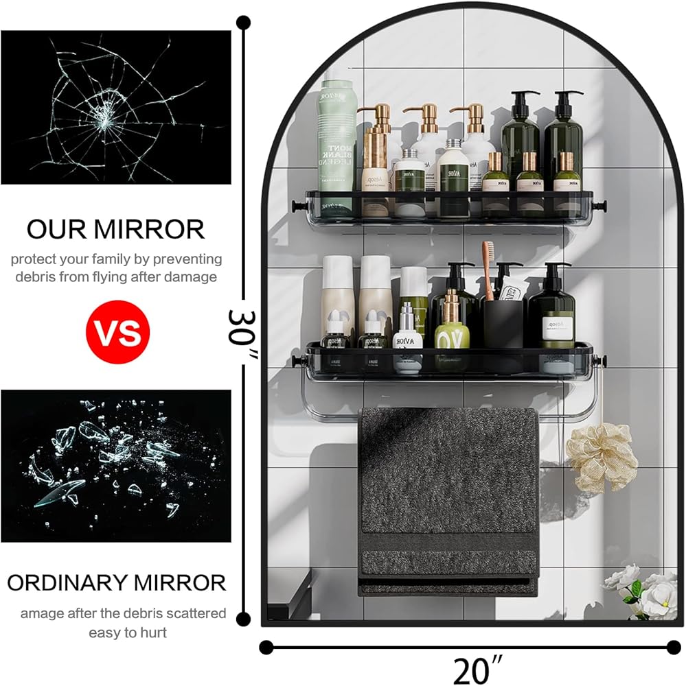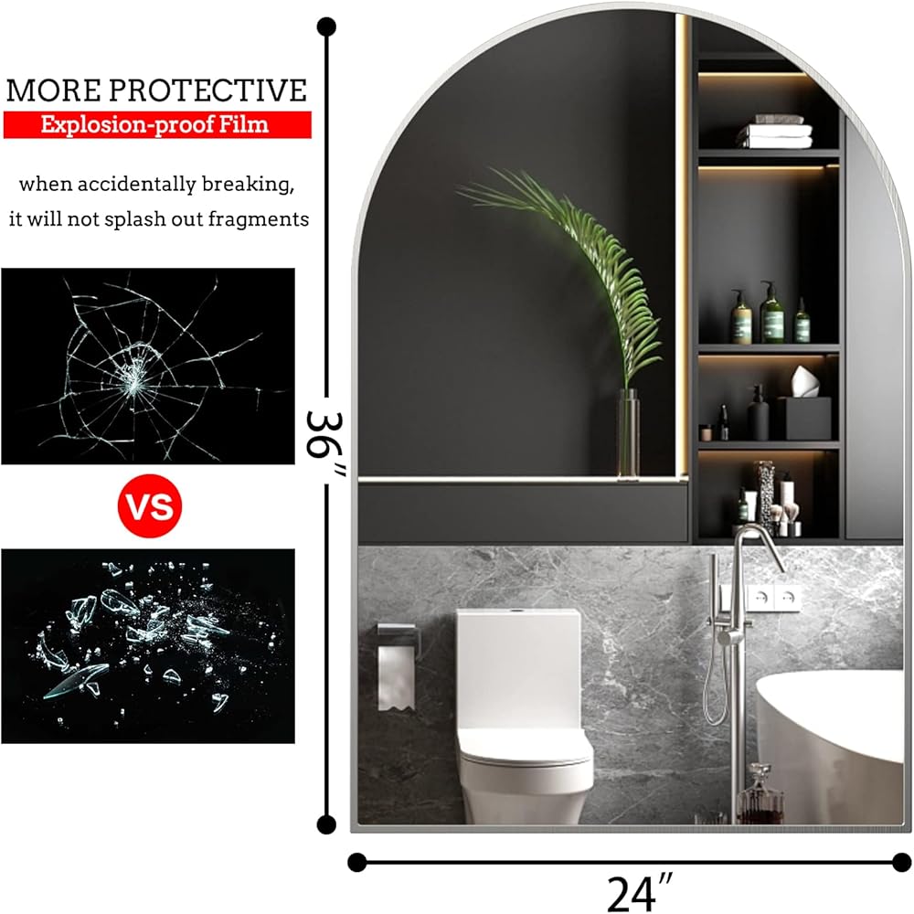 【جودة ممتازة】المرآة المقوسة مصنوعة من زجاج غشاء مقاوم للانفجار بحيث تكون أكثر أمانًا لك ولعائلتك. الجزء الخلفي مغطى بغشاء مقاوم للانفجار بحيث يتم منعه من الرش وإيذاء جسمك عندما يكون كذلك. مكسورة بواسطة قوة خارجية.