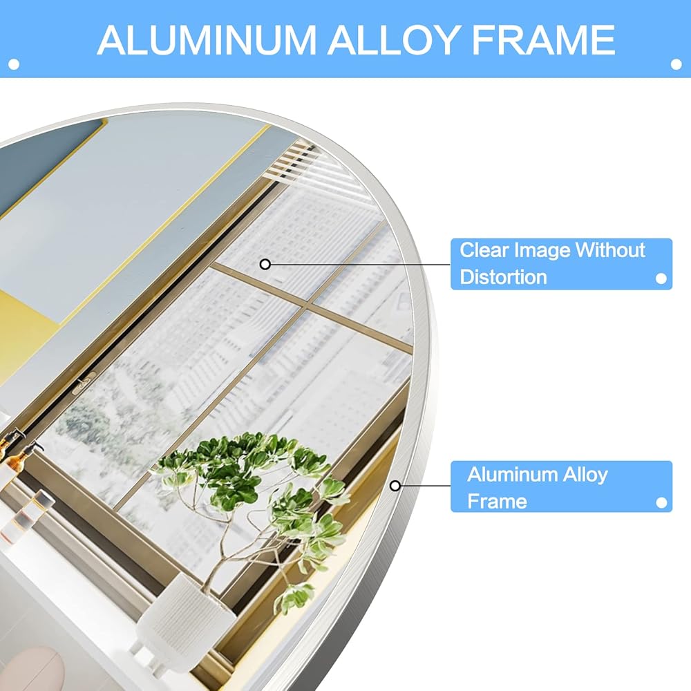 【إطار مصقول من سبائك الألومنيوم】سبائك الألومنيوم مع إطار عملية مصقول، قوي ومقاوم للصدأ. معالجة خاصة للمرايا مضادة للتآكل، مصممة للاستخدام لفترة طويلة. كما يتميز الإطار المصنوع من سبائك الألومنيوم عالي الجودة أيضًا بميزة مقاومة التآكل. تعمل المرآة المثبتة على الحائط للحمام بشكل جميل في كل المناخ.