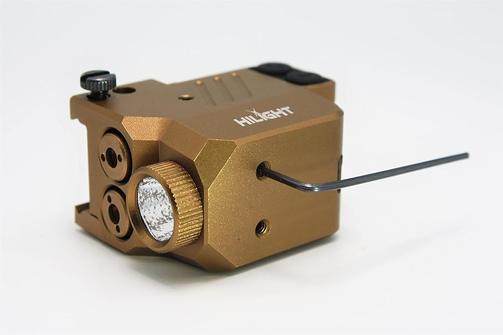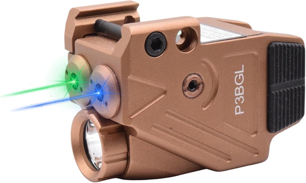 HiLight P3BGL TAN Blue Laser Sight Green Laser Sight 500lm مصباح يدوي لمسدس المسدس مع بطارية Micro USB قابلة لإعادة الشحن، درجة الطائرات العسكرية من الألومنيوم المؤكسد بلون أسمر ضارب للصفرة