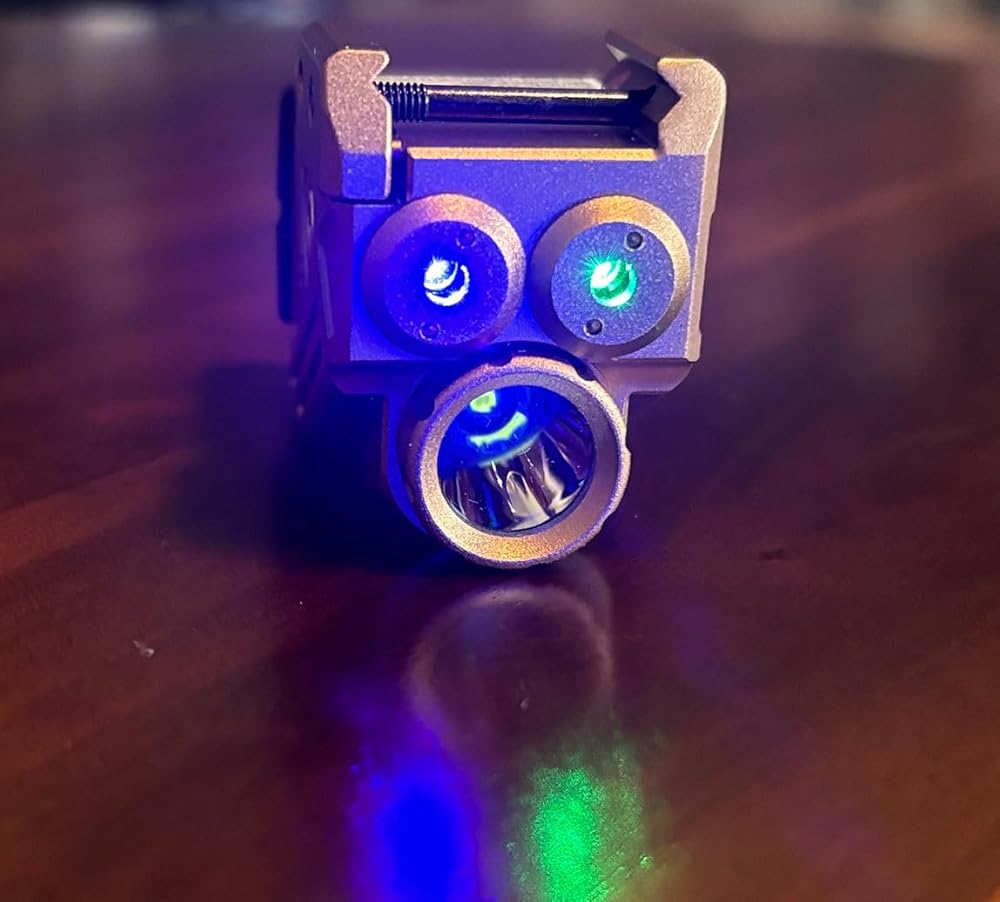 [التشغيل] يمكن تشغيل أو إيقاف تشغيل المصباح اليدوي ومنظار الليزر الأزرق ومنظار الليزر الأخضر بشكل مستقل، وبالتالي، قد يكون لديك مجموعات من الليزر الضوئي/الأحمر والليزر الفاتح/الأخضر والليزر الأحمر/الليزر الأخضر. يمكن ضبط كل من مشهد الليزر الأحمر ومشهد الليزر الأخضر عموديًا وأفقيًا.