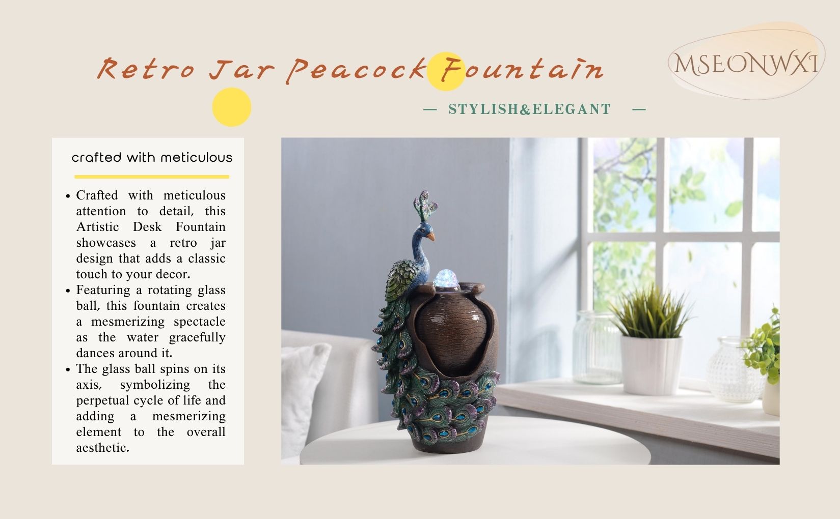 فائدة المنتج: عزز المساحة الخاصة بك مع نافورة ريترو جار بيكوك المذهلة، مما يضيف لمسة من السحر والأناقة العتيقة إلى أي مجموعة نافورة على سطح الطاولة.
