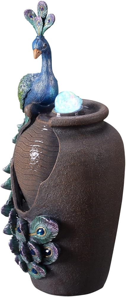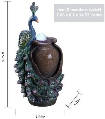 الضوء الملون: قم بتحويل محيطك من خلال الإضاءة الملونة العاكسة لنافورة الطاووس ذات الطراز القديم، مما يخلق عرضًا آسرًا من الألوان النابضة بالحياة التي ستحسن مزاجك وتخلق جوًا هادئًا.