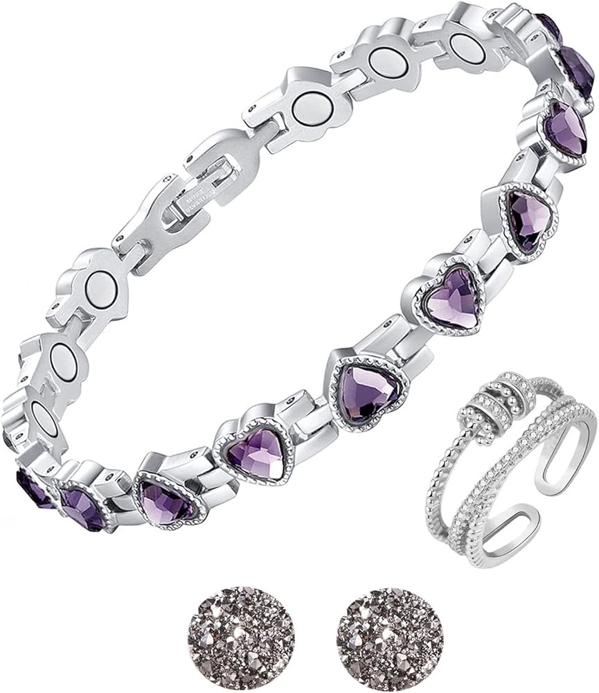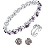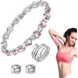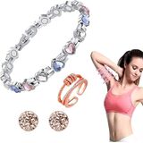 Magnetic Therapy Bracelet Ring Earrings Set for Women, Lymph Detox Magnetic Bracelet for Arthritis Pain Relief, Acupressure Slimming Earrings, Lymphatic Drainage Ring