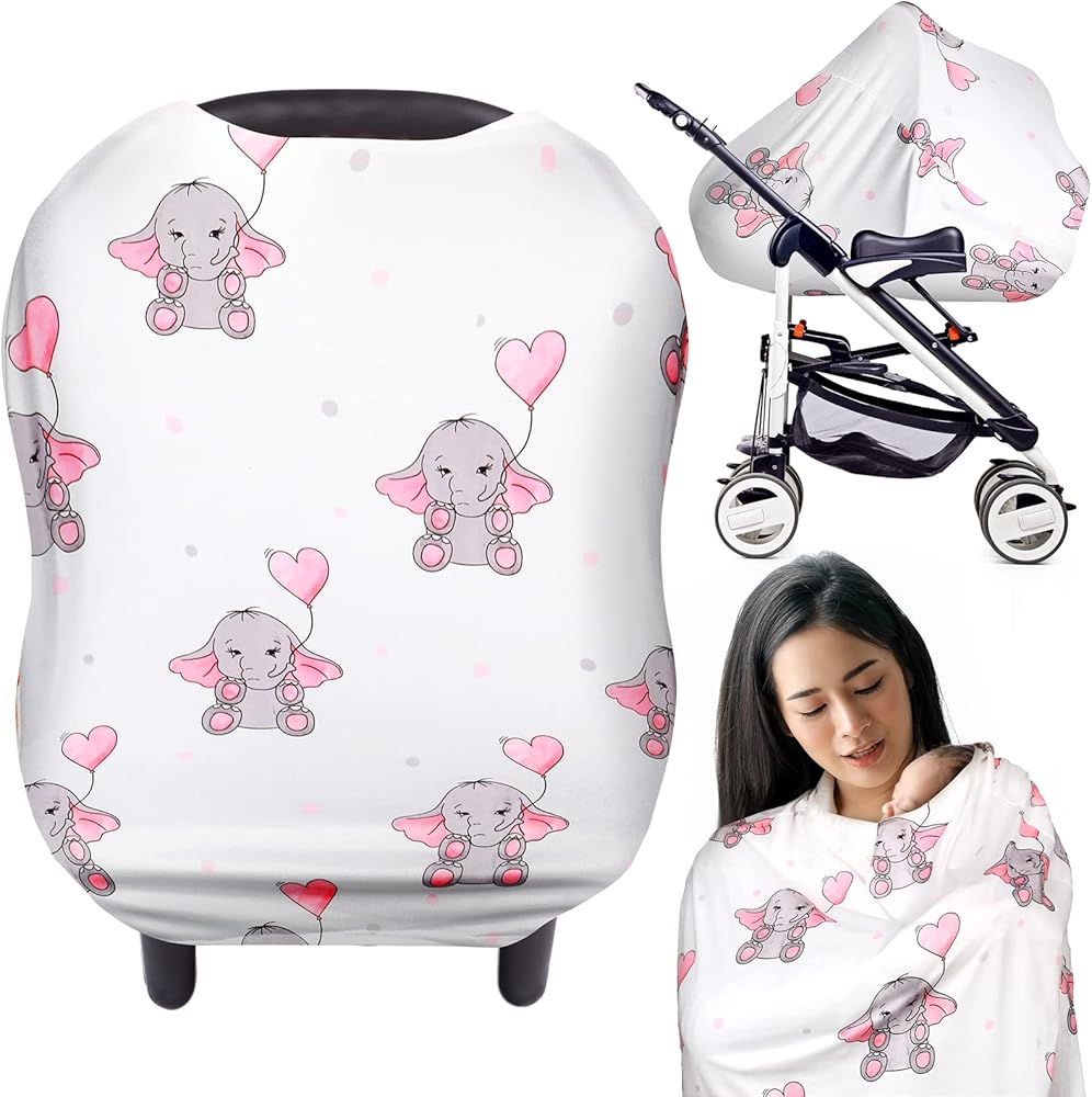 غطاء مقعد سيارة للأطفال الرضع غطاء مقعد سيارة مظلة قابل للتمدد الفيل الرضاعة غطاء مقعد السيارة للرضع الرضاعة الطبيعية ومقعد السيارة متعدد الاستخدام عربة التسوق غطاء كرسي عالٍ