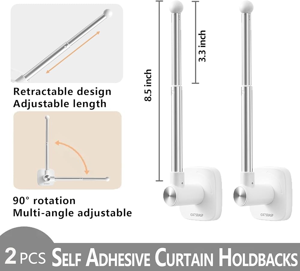 Coming with self adhesive tape at the back, our window curtain hooks are simple to use, just peel off the film and then stick to the place according to your needs, but please the place clean and dry for a better sticky effect, and then wait for over 24 hours to use.