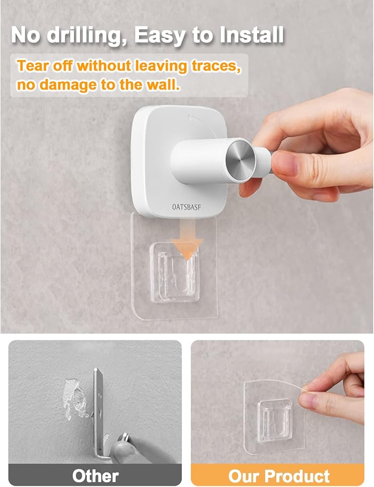 【Easy to Install】Our curtain hooks come with self-adhesive tape on the back, which is very easy to use, just tear off the film and stick it to the place as you need, but please clean and dry the place for better adhesion, then wait for more than 24 hours before using.