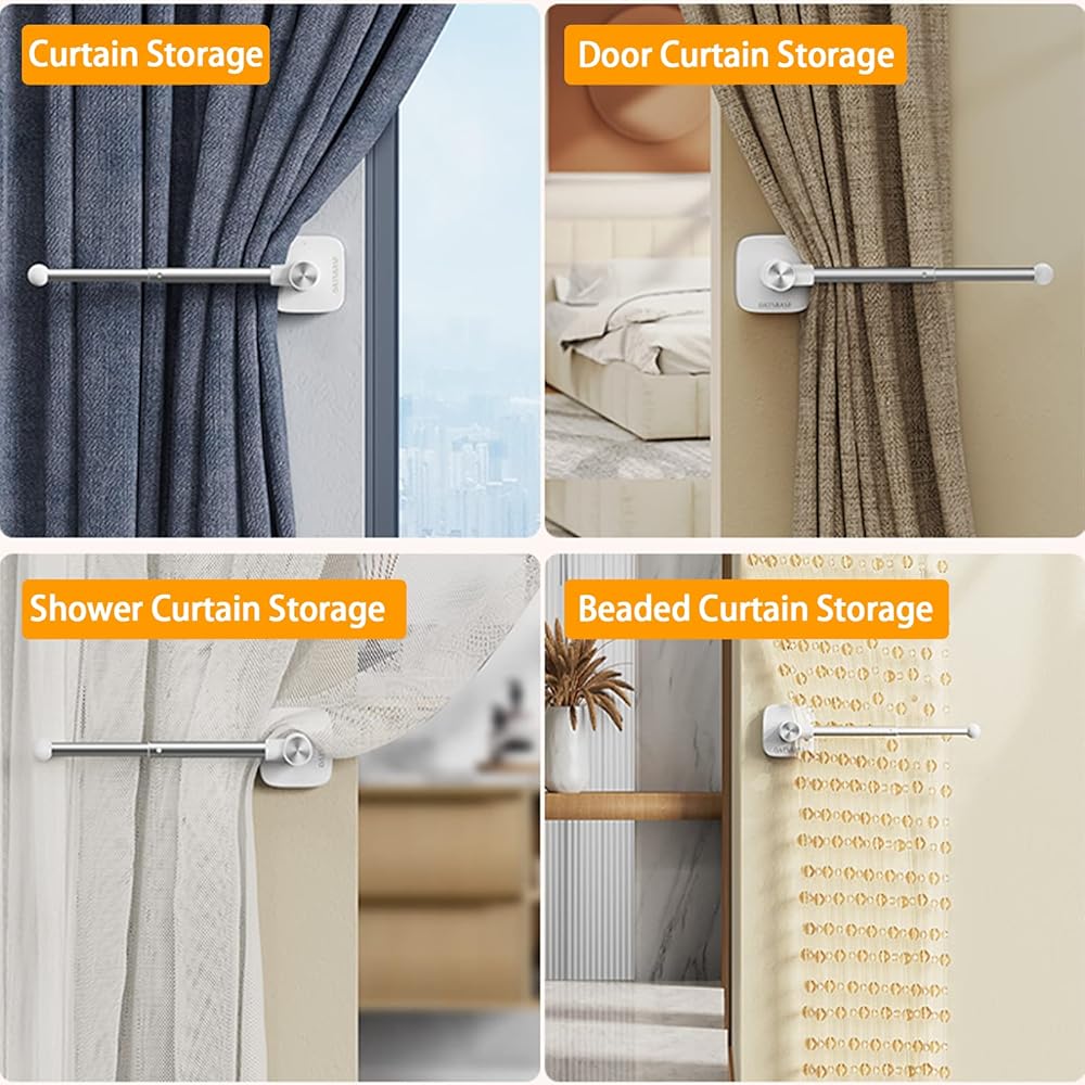 【Durable& Sturdy】 Made of high quality Aluminum Alloy, this metal curtain holder is corrosion resistant, deformation resistant, glossy and not easily oxidized and faded. The durable and smooth metal finish will never scratch the curtain and you will get a nice, smooth touch experience.