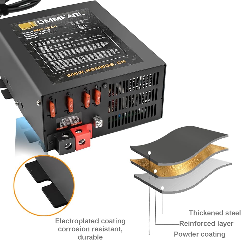 - مخرج طاقة تيار مستمر 75 أمبير، شاحن ذكي مدمج 4 مراحل