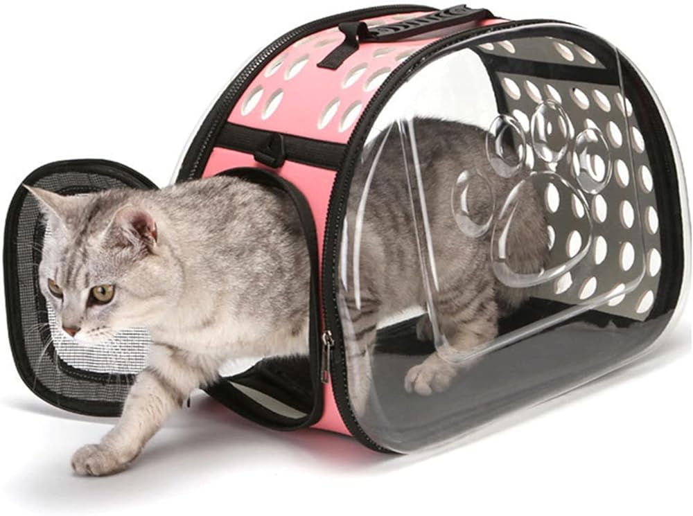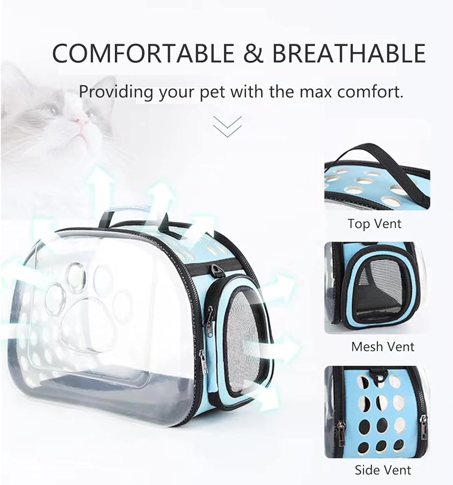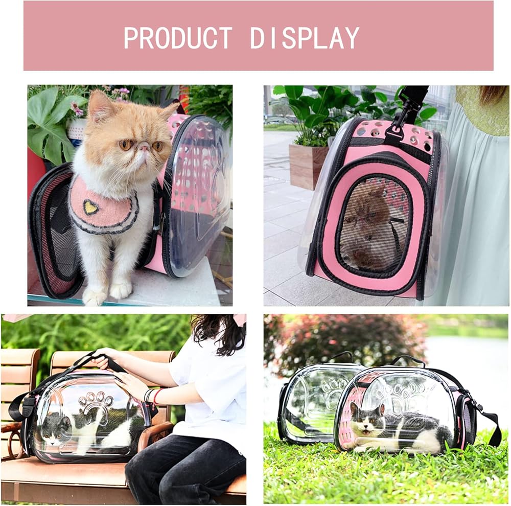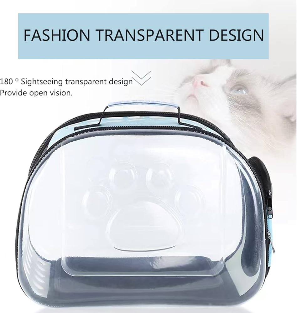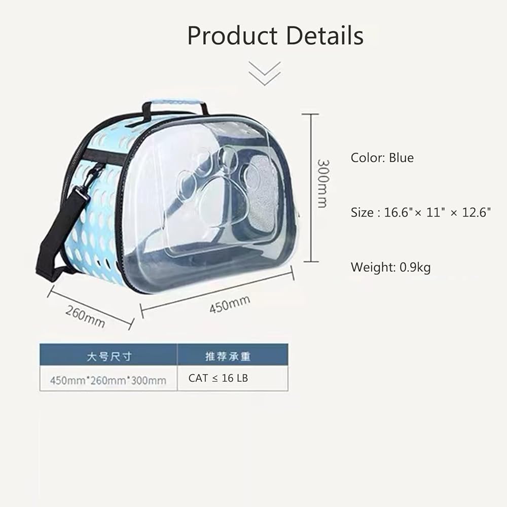 تصميم شفاف أنيق - تصميم شفاف لمشاهدة معالم المدينة بزاوية 180 درجة يوفر رؤية مفتوحة. أقصى سعة تحميل لحقيبة الحيوانات الأليفة هي 10 رطل (4.5 كجم)، أبعاد حاملات القطط 17 بوصة × 8.3 بوصة × 11.8 بوصة (الطول × العرض × الارتفاع)، متوافقة للقطط والجراء والحيوانات الأليفة الصغيرة.يرجى قياس حجم حيوانك الأليف ووزنه والتأكد مما إذا كان حيوانك الأليف مناسبًا للناقل قبل الشراء.