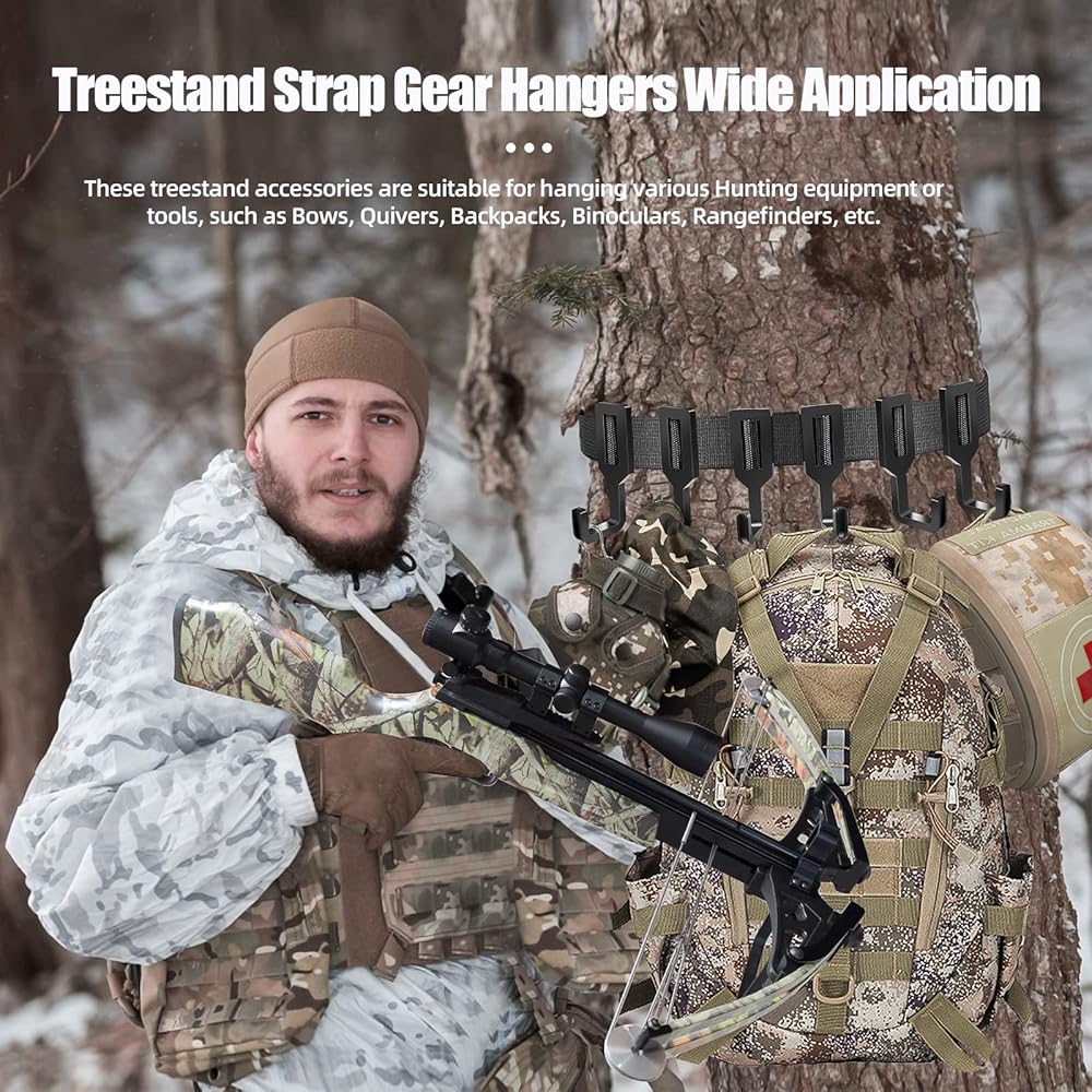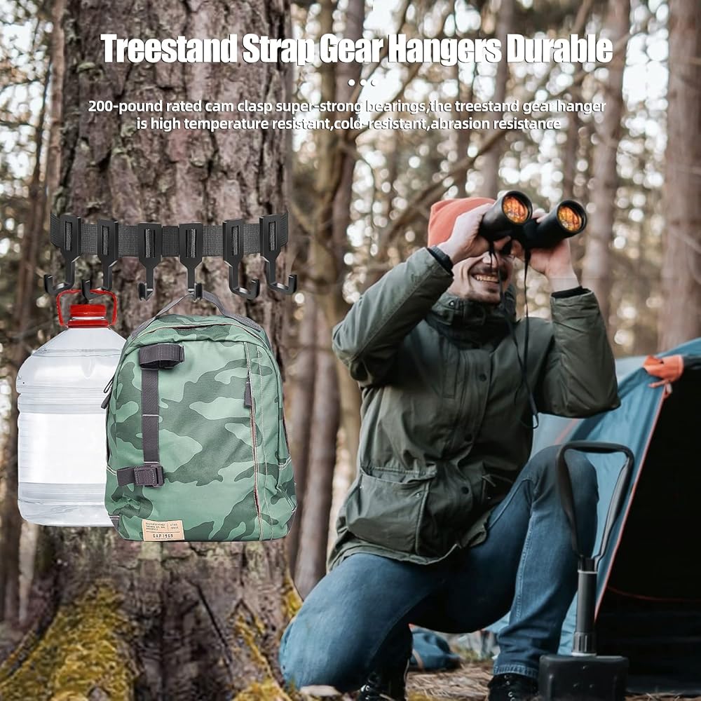 _xD83C__xDD65_DURABLE USE : Made of premium macromolecules and high-density nylon webbing material. 200-pound rated cam clasp super-strong bearings,the treestand gear hanger is high temperature resistant,cold-resistant,abrasion resistance.