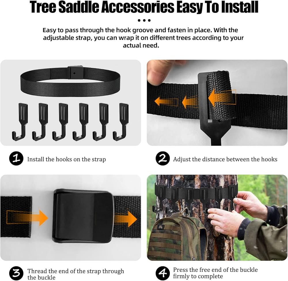 _xD83C__xDD65_LIGHT-WEIGH QUIET: No noise,easy to carry.Lightweight and can be easily go through the hook groove and fasten in place, much quicker than screw in hooks. Wrap it around tree trunks or branches, and adjust the straps for different situations.._xD83C__xDD65_EASY TO INSTALL: Easy to pass through the hook groove and fasten in place. With the adjustable strap, you can wrap it on different trees according to your actual need.
