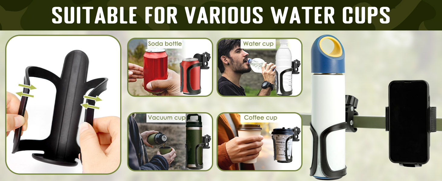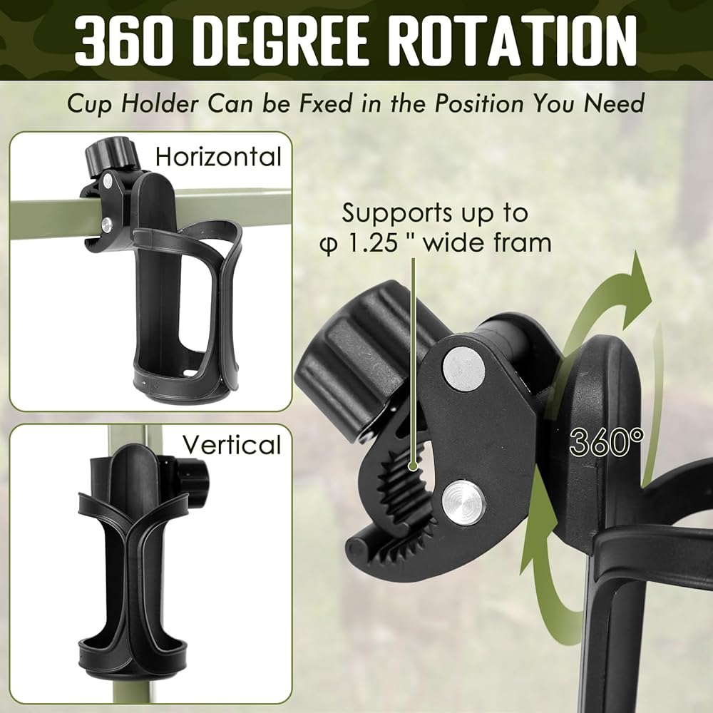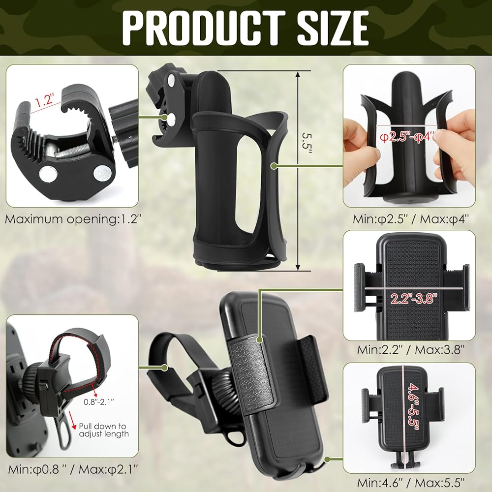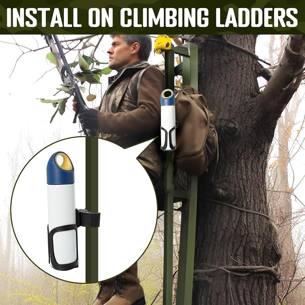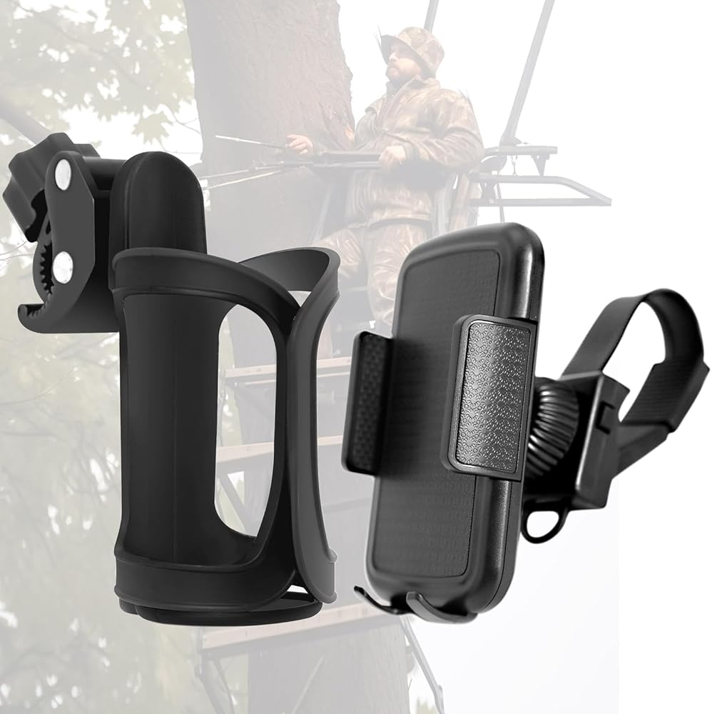 أساسيات الصيد: مزيج من حامل الأكواب وحامل الهاتف المحمول يجعل من السهل تركيب معظم حوامل الأشجار وحوامل الغزلان وإطارات التسلق، بحيث يكون لديك مكان لراحة زجاجة المياه والهاتف المحمول أثناء الصيد، حتى تتمكن من الصيد دون قلق.