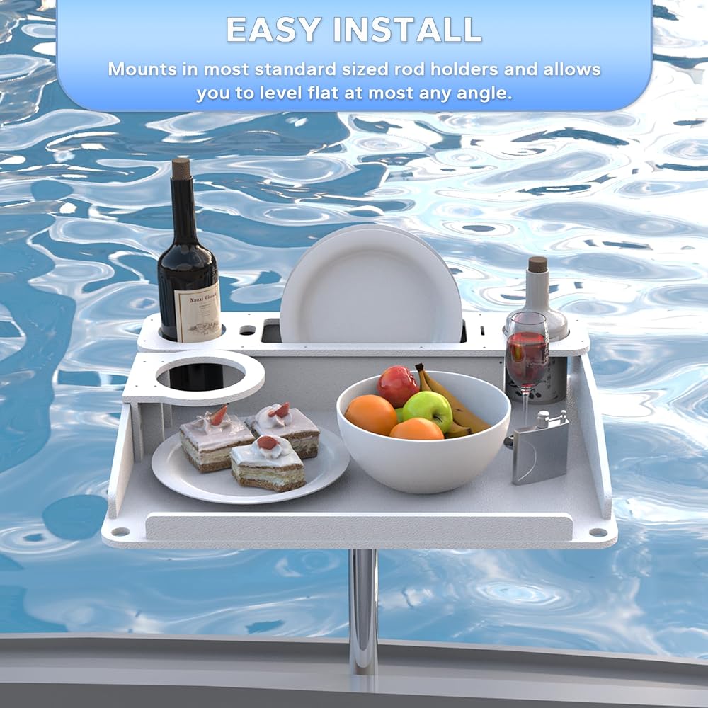 Material: The Utility Boat Table is made from robust materials like PE (Polythene) and secured with stainless steel hardware, the rod holder is made of stainless steel, which is environmentally friendly, durable, waterproof and rust-resistant to withstand marine conditions, while also being easy to clean and maintain.