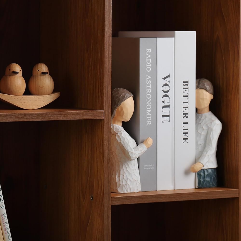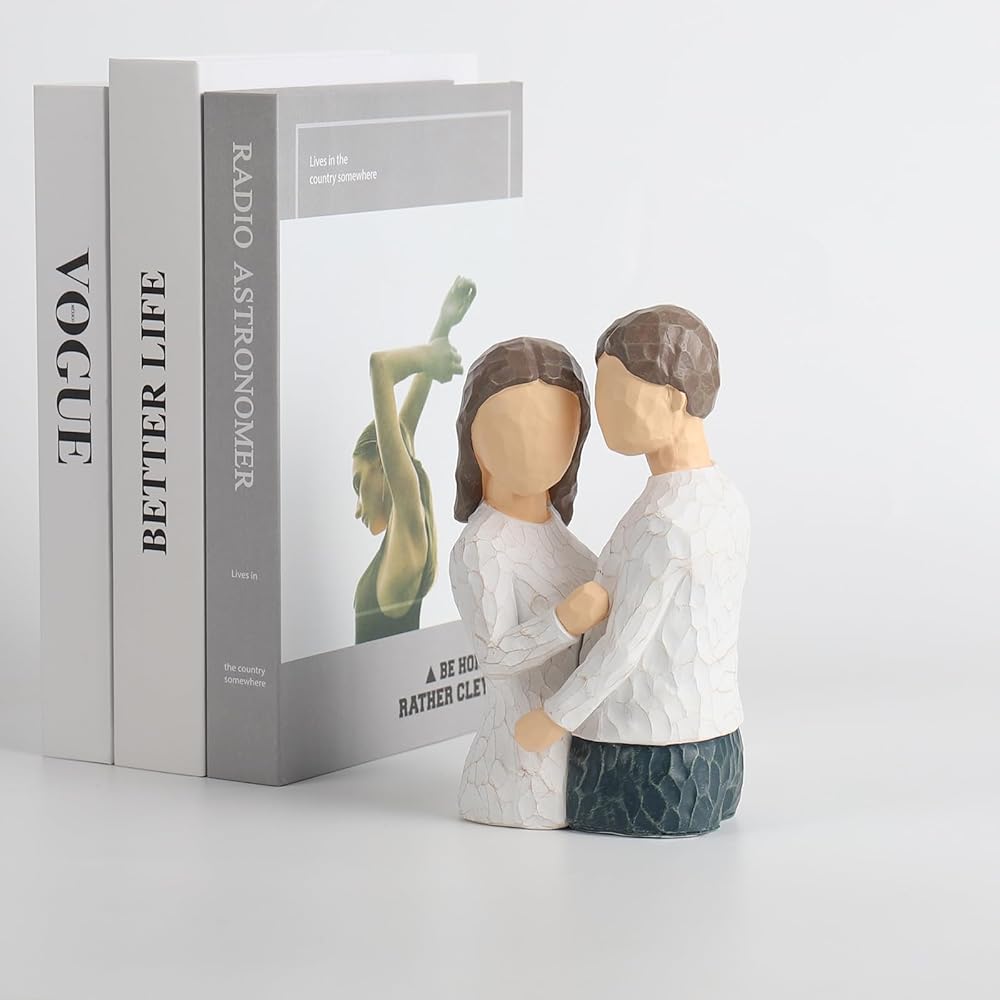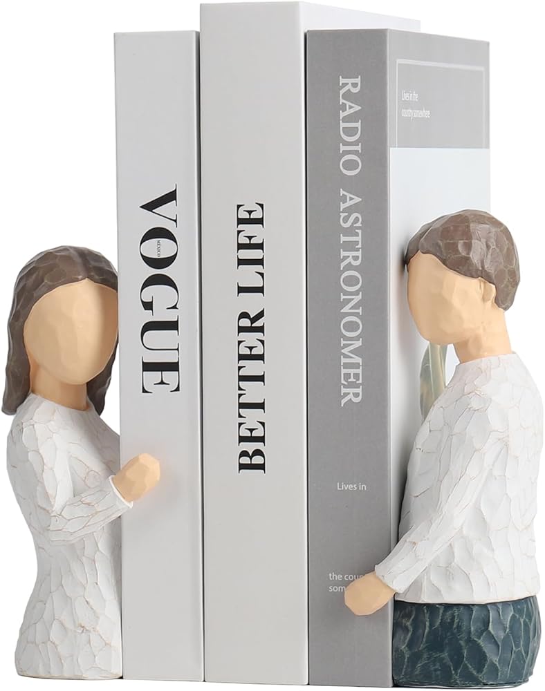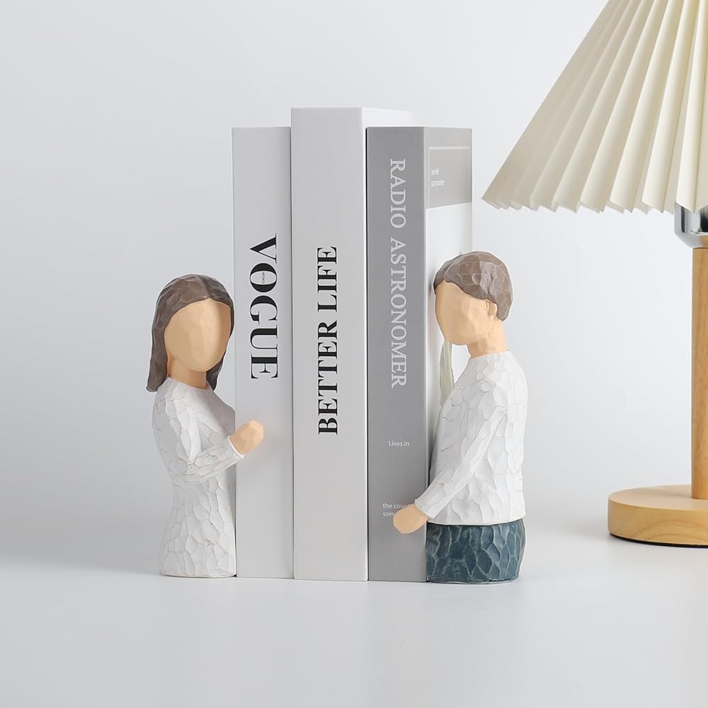 It is made of high-quality resin materials. Designed with inspiration from couples hugging each other, the surface is smooth and easy to clean.The bookends use modern thinker style, polished design and unique color to attract everyone's attention, and add extraordinary taste to show personality.The Figure Statue bookends can not only be used as aesthetic decorations, but also as decorative bookends to store books, documents, magazines, CDs, tapes, etc.