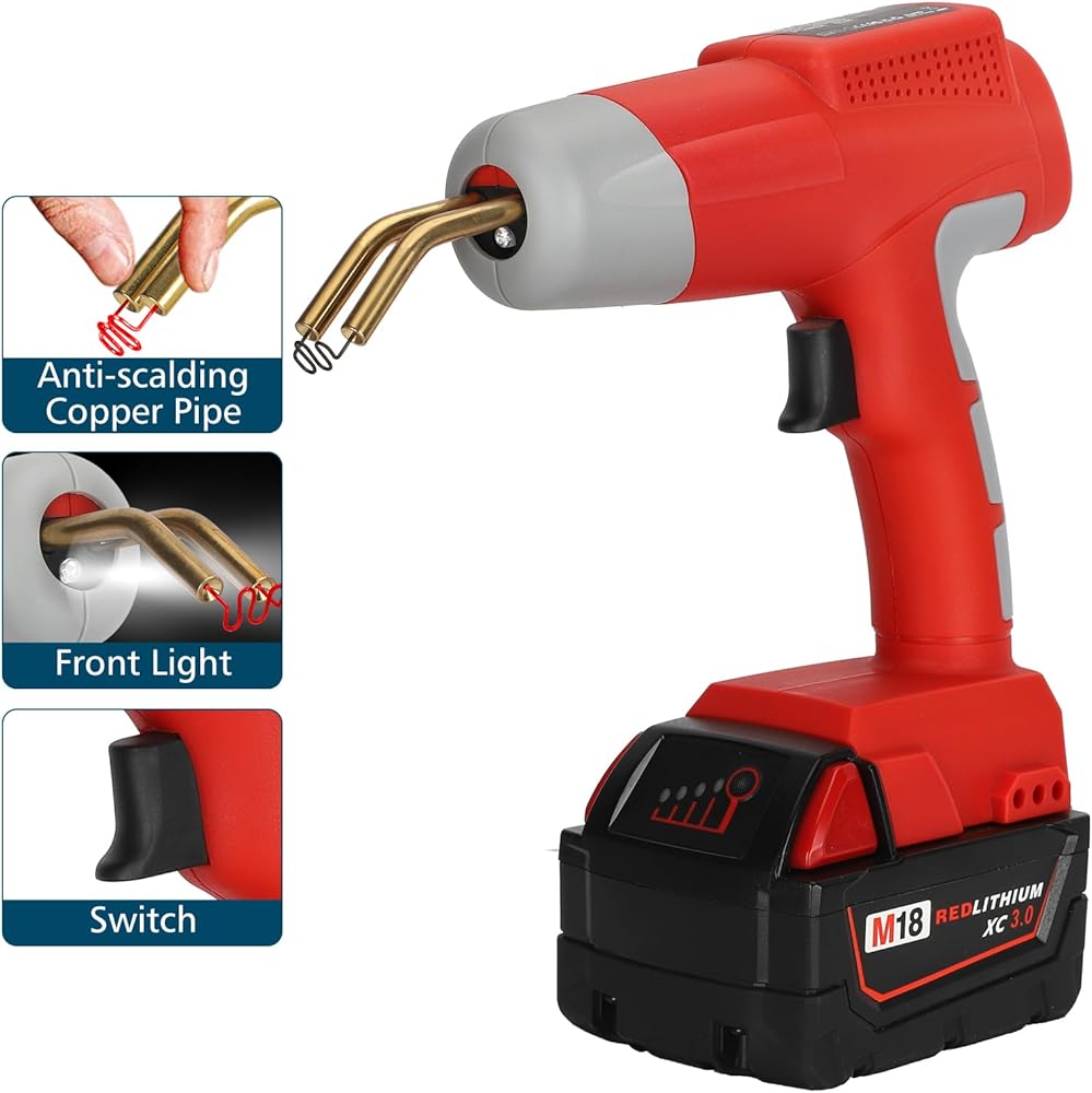【Humanized Design】1. When the battery voltage is lower than 15V, the low voltage protection function will be activated automatically. 2. Ergonomically designed rubber handles fit the palm of your hand, you won't feel fatigue when holding it for a long time, making your work more convenient, fast and easy. 3. The kit is equipped with LED lights, which allows you to work dark places such as under the car. 4. Brass holder to prevent your hands from getting burnt.