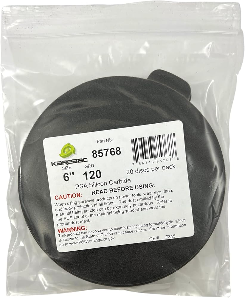 Karebac 6" 120 grit PSA cloth discs are used for Stone, Marble & glass applications. Can be used on any 6" back-up pad with a vinyl face designed for PSA discs. Sun gold has been providing coated abrasives to the Stone, Marble & glass markets for over 40 years.