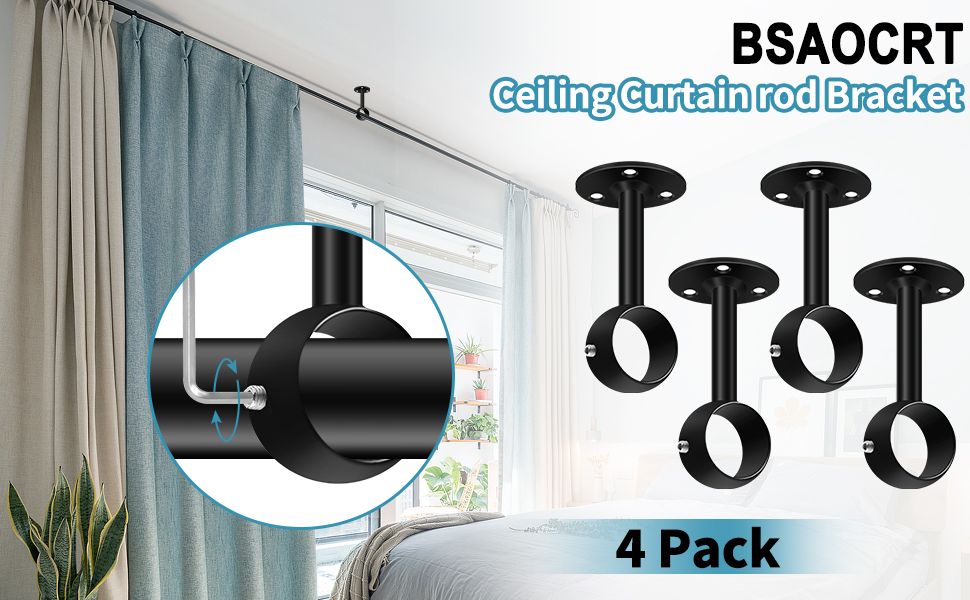 【قضيب التثبيت في مكانه】هل ما زلت قلقًا من اهتزاز القضيب أو سقوطه عند وضع الستارة بقوة؟ تعتمد حوامل قضيب ستارة السقف من بي اس ايه او سي ار تي على كوب مغلق مع براغي قابلة للتعديل، يمكنها تثبيت القضيب في مكانه، وليس من السهل اهتزازه. ملاحظة: خطافات قضيب ستارة السقف تناسب قضيب 1-1/4 انش، يرجى التحقق من المقاس قبل الطلب.