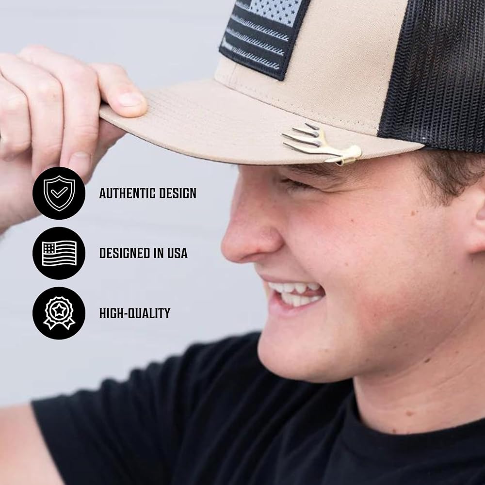 مستوحى من الأيائل والغزلان: مشبك حافة القبعة النحاسي بنسبة 100% مستوحى من الأيائل والغزلان المهيبين، مما يجسد قوتهم وروحهم.