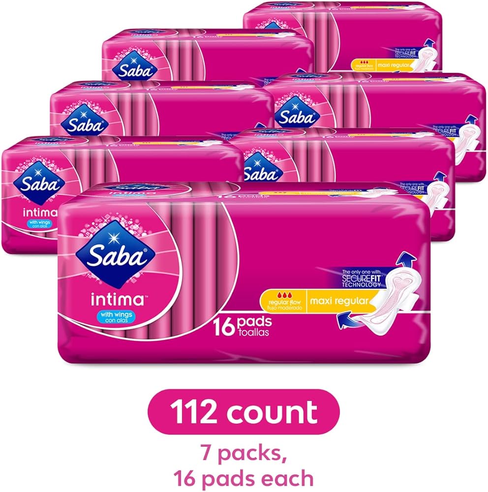 112 وسادة حيض بأجنحة (7 عبوات من 16 قطعة)
