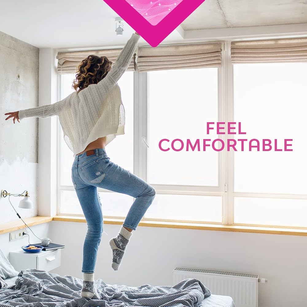 تتميز كل وسادة بطبقة علوية ناعمة تساعد على منع التهيج والتسرب، بينما يضمن تصميم سكيور فيت بقاء الوسادة في مكانها طوال اليوم.