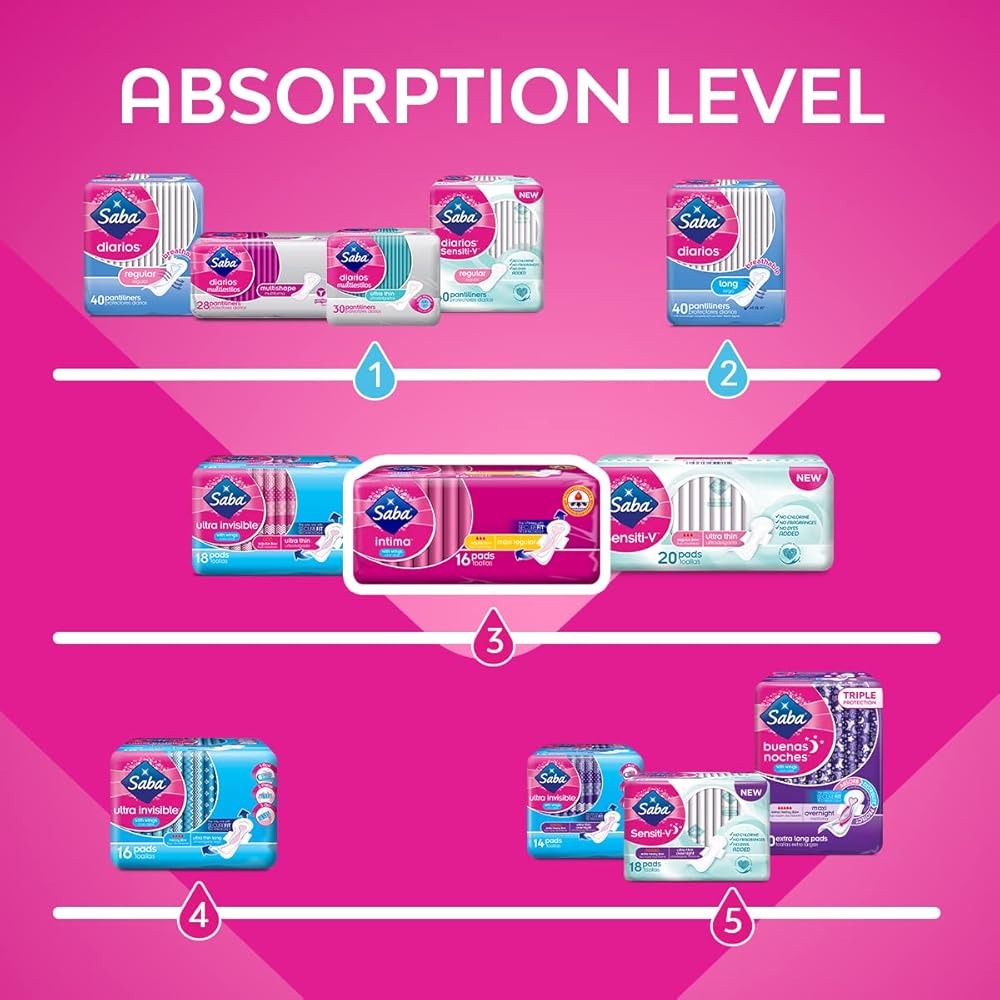 فوط ماكسي العادية من سابا انتيما هي الخيار المناسب لك لتشعر بالراحة والحرية خلال يومك. تتشكل تقنية سكيور فيت على الجزء الأمامي والخلفي من جسمك، وتتكيف بشكل مثالي مع شكل جسمك واحتياجاتك. كما أنها تحتوي على طبقة علوية ناعمة للغاية تحافظ على بشرتك محمية وتوجه الرطوبة على طول المركز مما يضمن أن تدفق الدورة الشهرية لن يعيقك للاستمتاع بيومك كما ينبغي: في أفضل حالاتك. تحميك سابا انتيما برقة، مما يساعدك على الشعور بمزيد من الراحة في تلك الأيام التي تحتاج إليها بشدة.