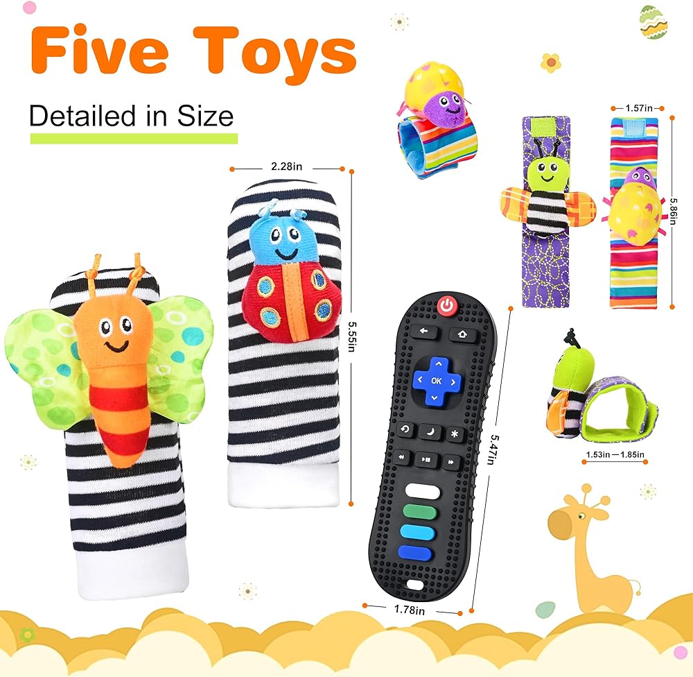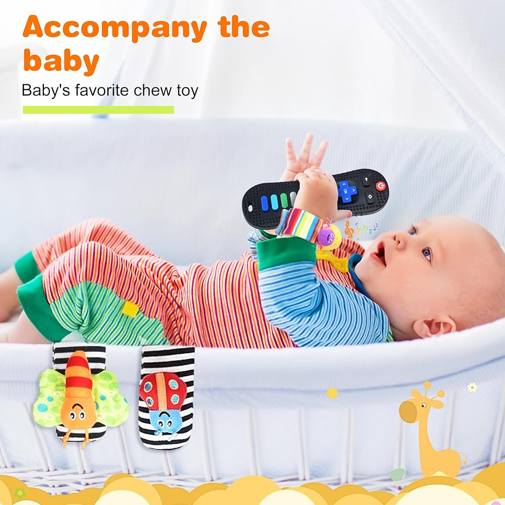 ألعاب الأطفال قدامة من 6 إلى 12 شهرًا، ألعاب تسنين ناعمة من السيليكون التنموي، جوارب معصم خشخيشة للأطفال من عمر 0 إلى 6 أشهر، ألعاب مضغ على شكل ضروس للأطفال الصغار من الأولاد والبنات (أسود)