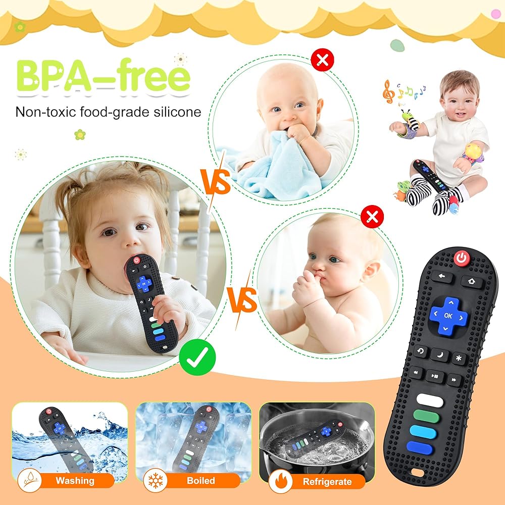 تخفف من آلام التسنين: ألعاب التسنين مصممة من مادة سيليكون صالحة للطعام، ناعمة بما فيه الكفاية، يمكن لطفلك أن يجد الراحة من آلام التسنين. توفر ألعاب مضغ التسنين على شكل ضروس تعمل بالتحكم عن بعد تجربة مضغ آمنة ومرضية، مما يساعد على تهدئة اللثة الرقيقة. قل وداعًا لأيام التسنين الصعبة تلك!