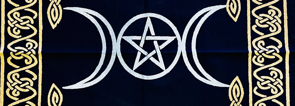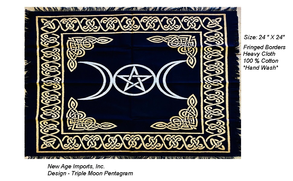 قماش التارو المذبح: إلهة ثلاثية مع نجمة خماسية - 24 بوصة × 24 بوصة (ذهبي/فضي على نجمة خماسية/خماسي أسود)