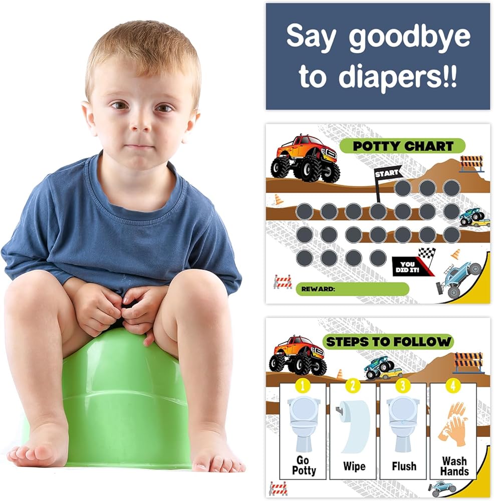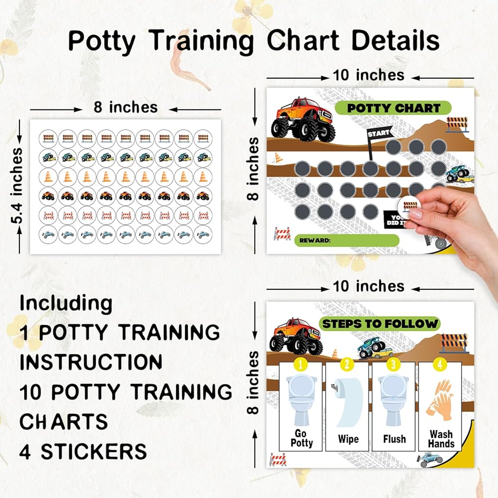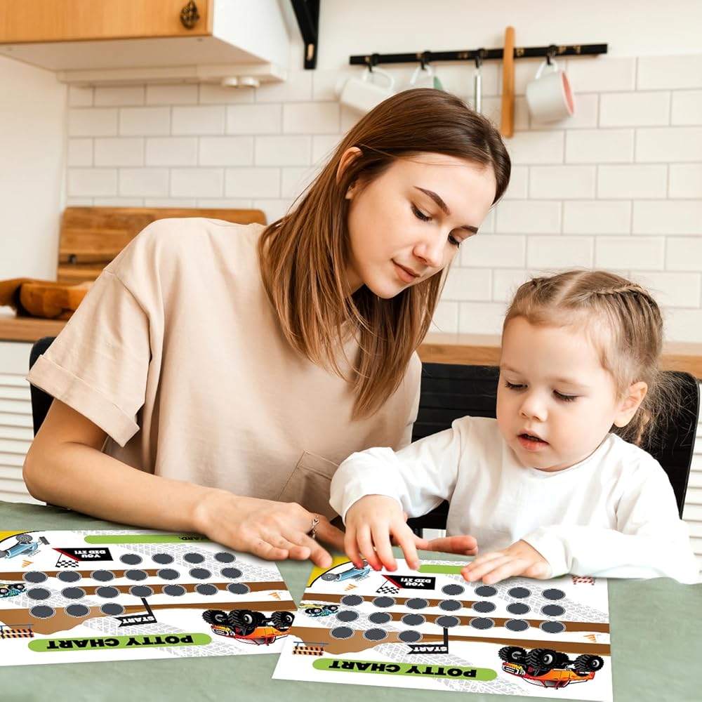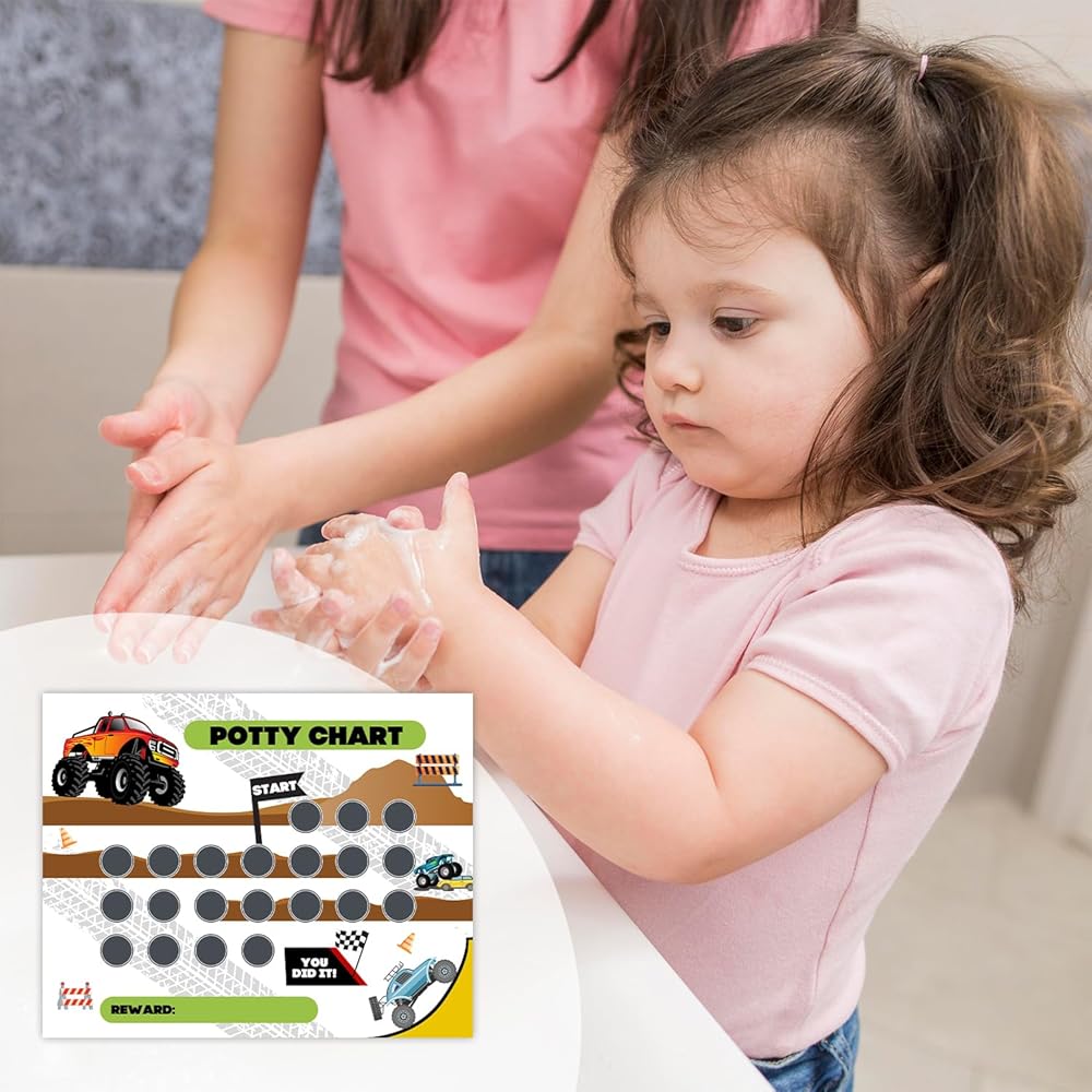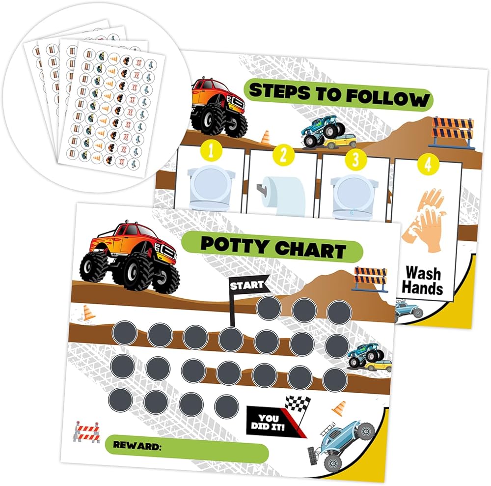 • THEMED DESIGN: mountain truck is the main design of this potty sticker chart kit; the stickers are combined by different design styles, which are attractive and interesting, easy to attract children's attention and arouse their interest.