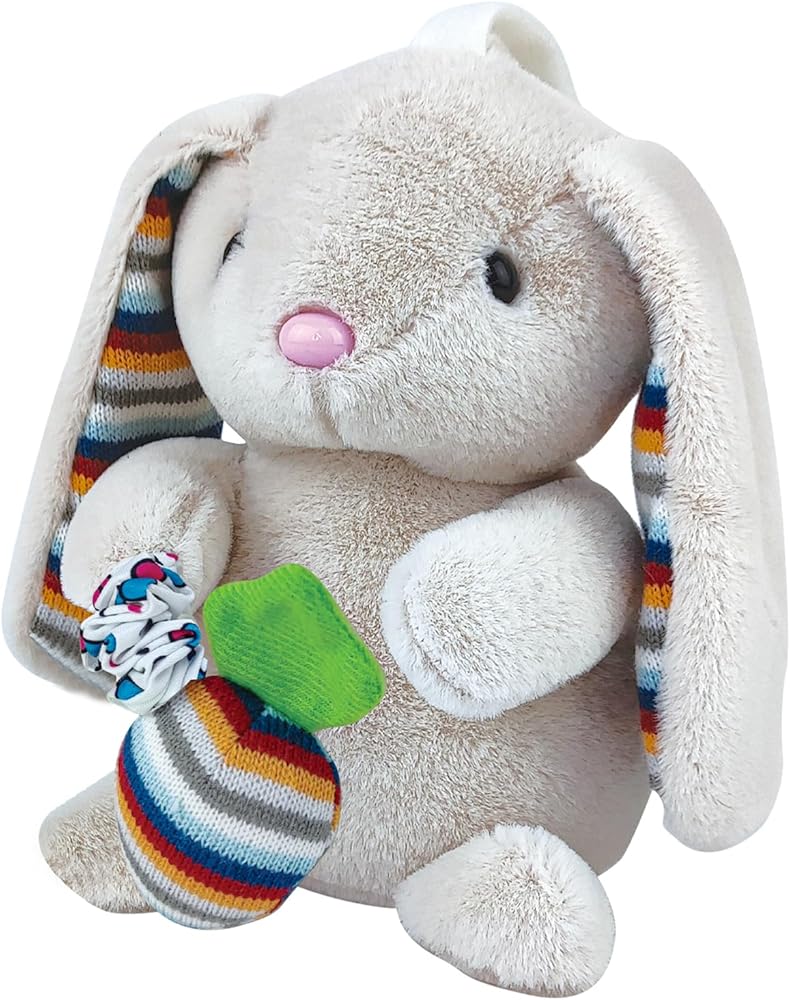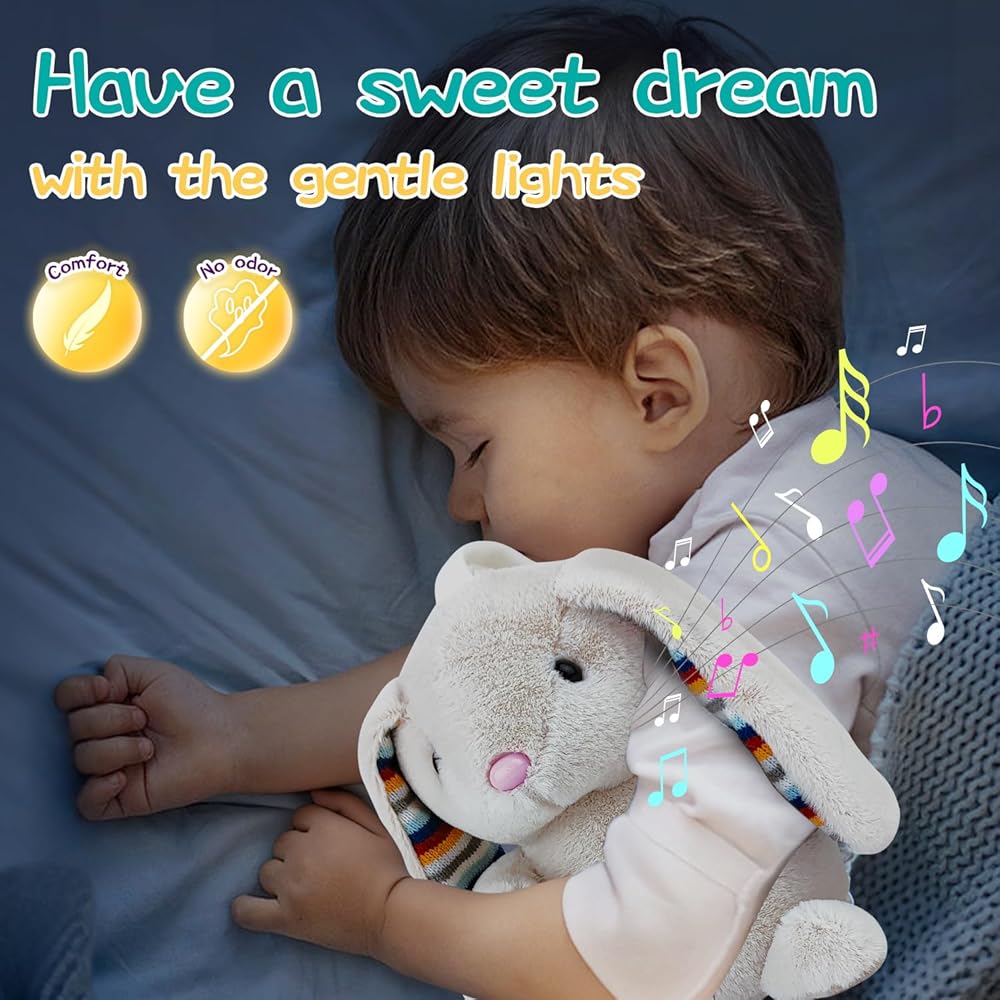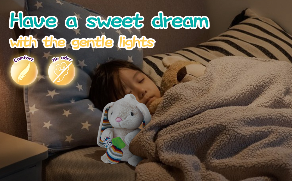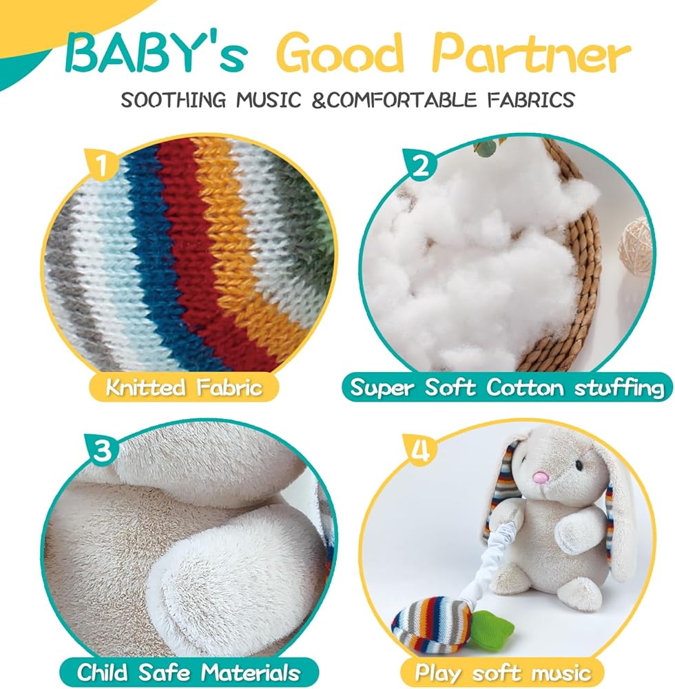 تحتوي لعبة الأرنب القطيفة هذه على صندوق موسيقى مدمج يمكنه تشغيل التهويدات المهدئة وتهدئة الأطفال وتهدئتهم واسترخائهم والسماح لهم بالدخول في أحلام سعيدة.