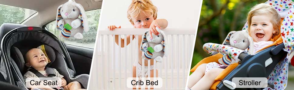 تعمل لعبة الأرنب الموسيقية المعلقة على تطوير حواس الطفل ومهاراته الإدراكية وذكائه العاطفي من خلال موسيقاها وخصائصها الحسية.
