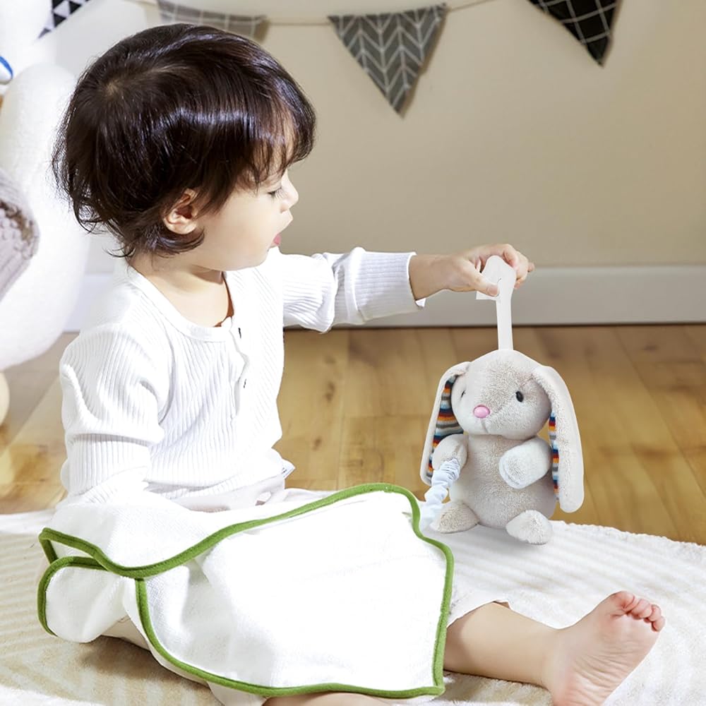 لعبة الأرنب الموسيقية المعلقة مصنوعة من مواد آمنة وصديقة للبيئة وهي مثالية لحديثي الولادة وما فوق. إنها هدية رائعة وهي لعبة حسية ممتعة وتعليمية للأطفال.