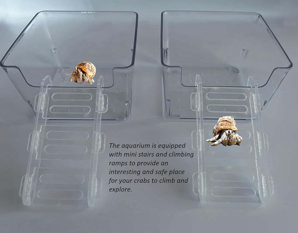Equipped with mini stairs and climbing ramps : The aquarium is equipped with mini stairs and climbing ramps to provide an interesting and safe place for your crabs to climb and explore.